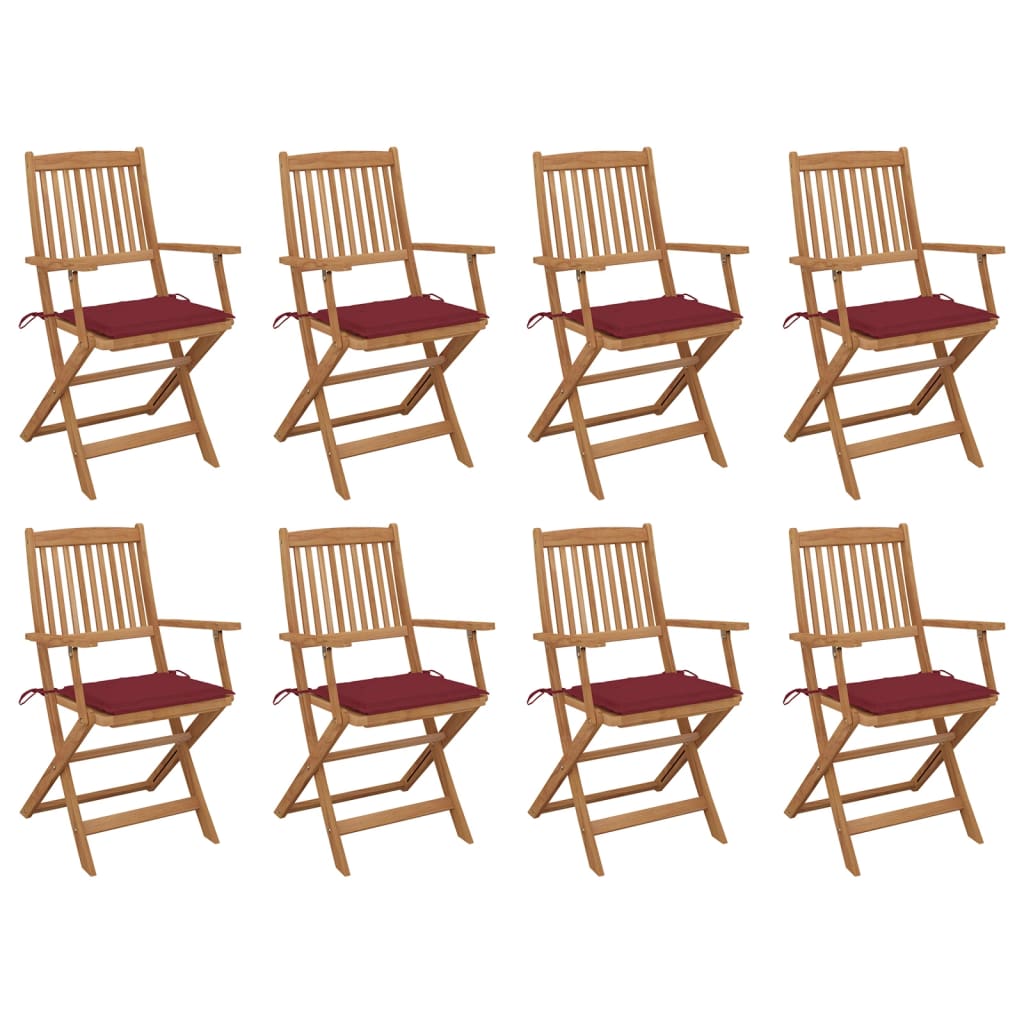 Scaune pliabile de exterior cu perne, 8 buc., lemn masiv acacia GartenMobel Dekor