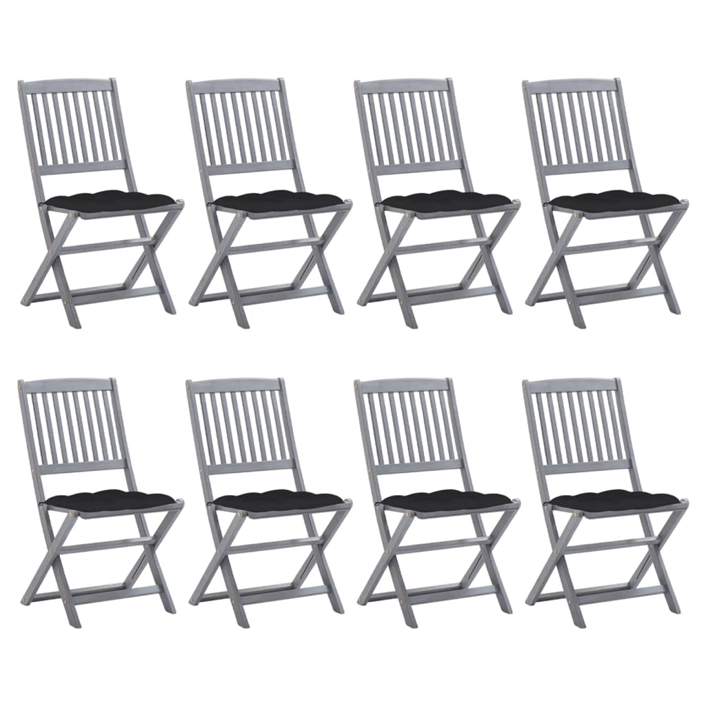 Scaune pliabile de exterior cu perne, 8 buc., lemn masiv acacia GartenMobel Dekor