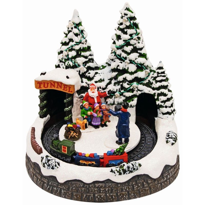 Sceneta muzicala de Craciun cu Mos Craciun cu fotografi si trenulet, sceneta este iluminata de LED-uri colorate si blitz alb ce clipeste. Poate reprezenta un cadou inedit cu ocazia sarbatorilor de iarna sau poate fi un decor deosebit.