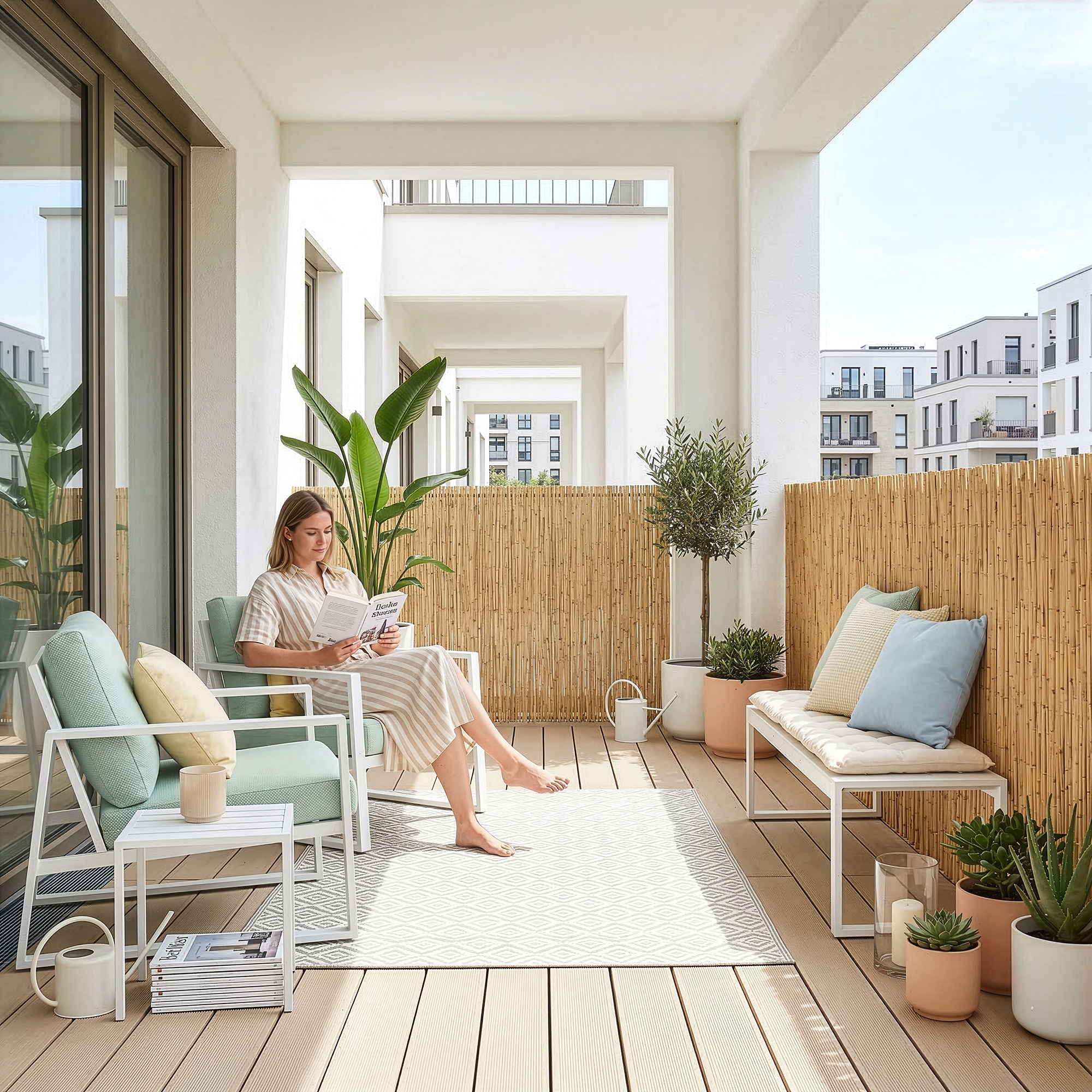 Die Schilfmatte bietet eine ideale Lösung, um unerwünschte Blicke, Wind und direkte Sonneneinstrahlung in Ihrem Außenbereich abzuwehren. Mit ihrer natürlichen Beschaffenheit fügt sie sich harmonisch in Garten, auf Balkonen und Terrassen ein und schafft eine private Atmosphäre, in der Sie ungestört entspannen können.
