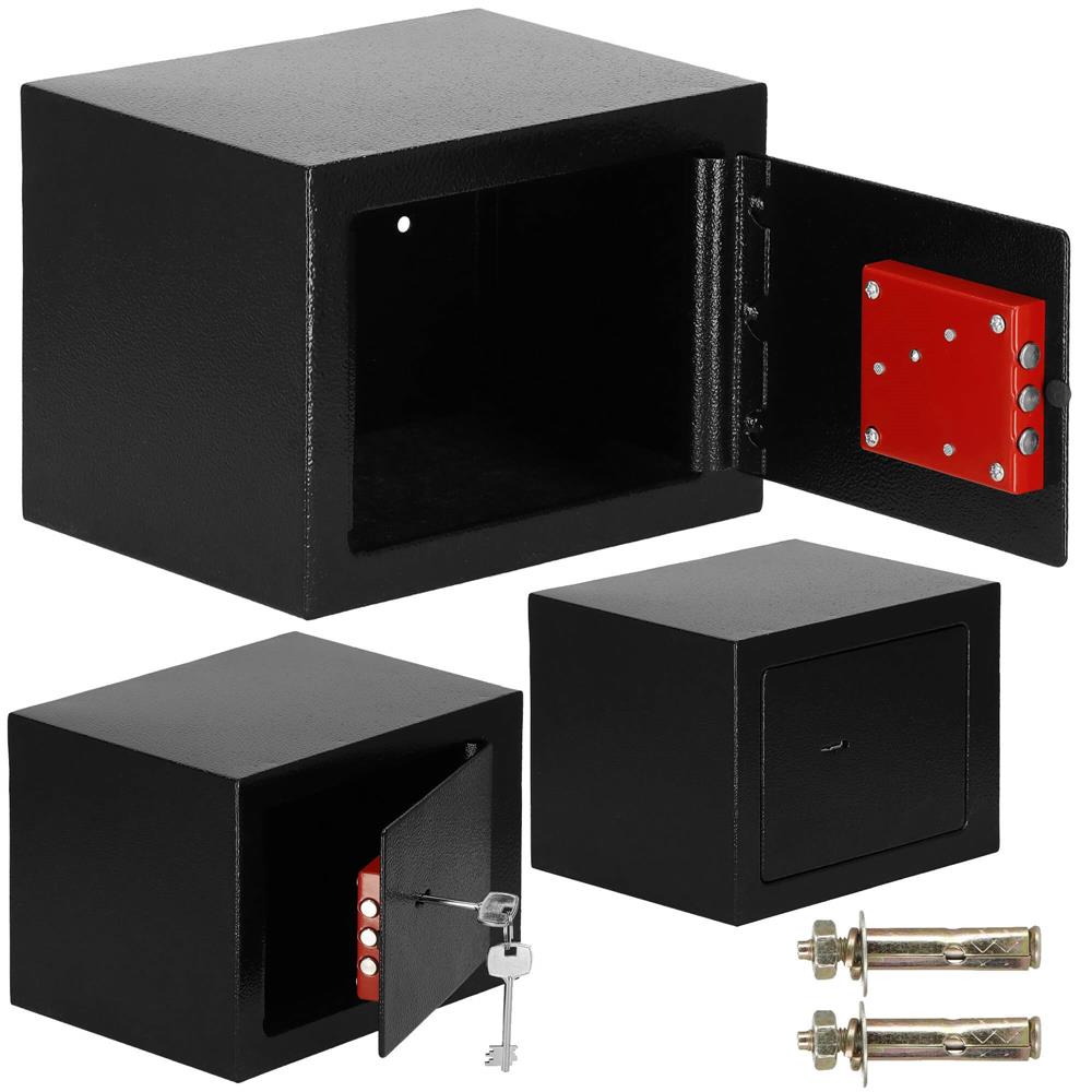 Seif cu cheie din otel, negru, 170x230x170 mm, montaj perete/podea