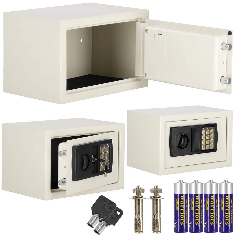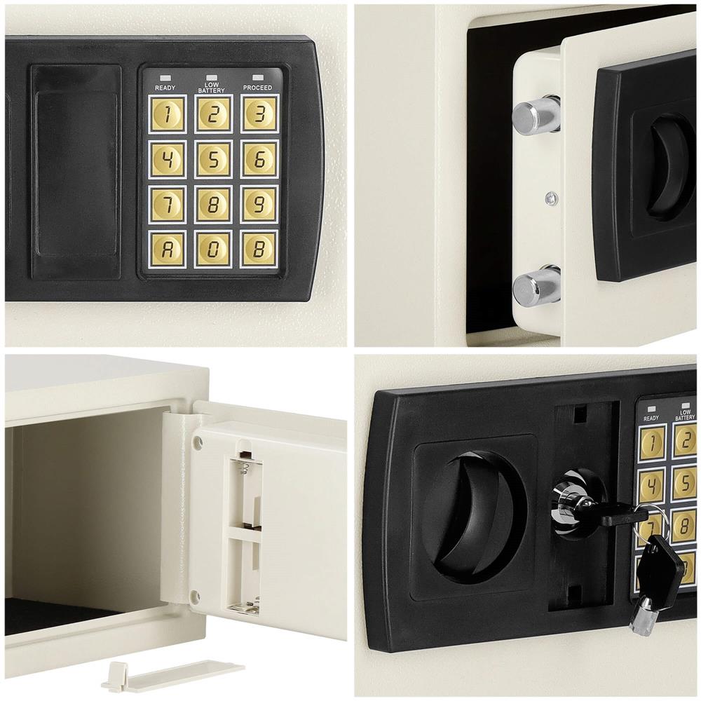 Seif electronic din otel cu cifru si cheie, 30x20x20 cm, bej