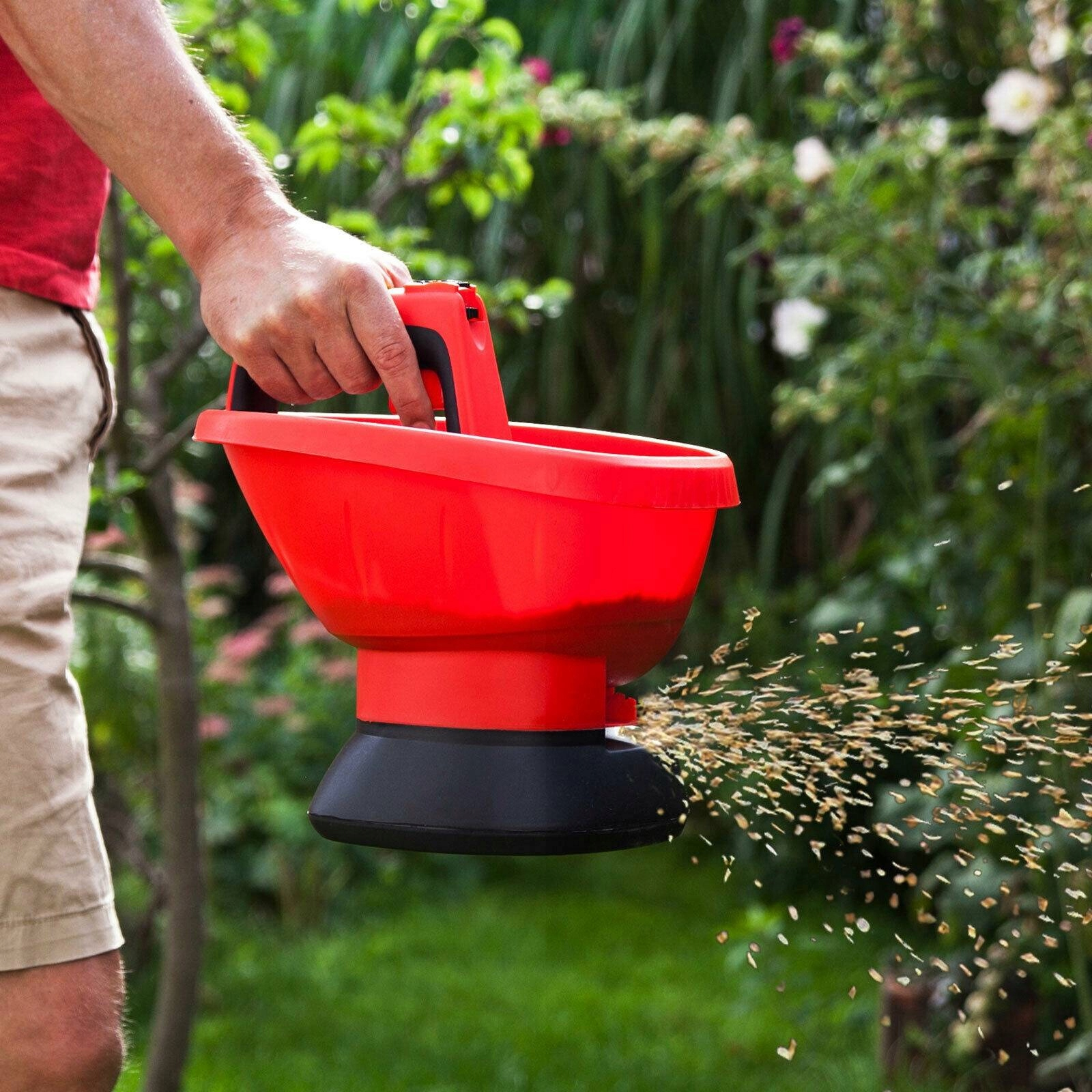 Semanator electric pentru gradina cu reglaj debit si latime, 2.7 L, alimentare baterii, 27x25x29 cm