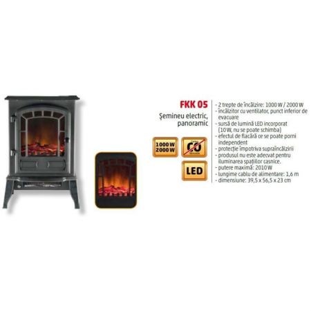 Descriere Semineu electric panoramic, negru, 2000 w,