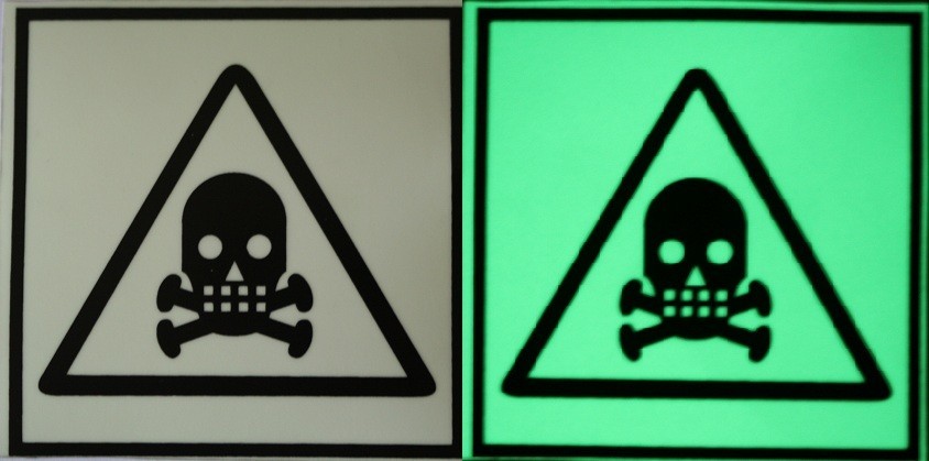 Semn avertizare Substanțe toxice fosforescent, 10x10 cm, vizibil noaptea