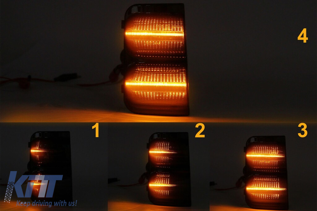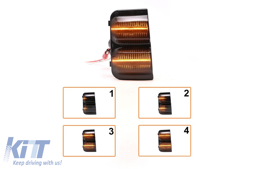 Semnale de întoarcere LED dinamice potrivite pentru oglinzile laterale ale Fiat Ducato, Peugeot Boxer, Citroen Jumper după 2006 cu bază fumurie, stânga + dreapta Performance AutoTuning