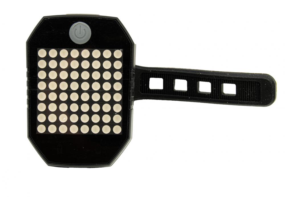 - Fixează semnalizatorul pe bicicletă (față sau spate), pornește-l din buton și alege modul potrivit înainte de plecare.
