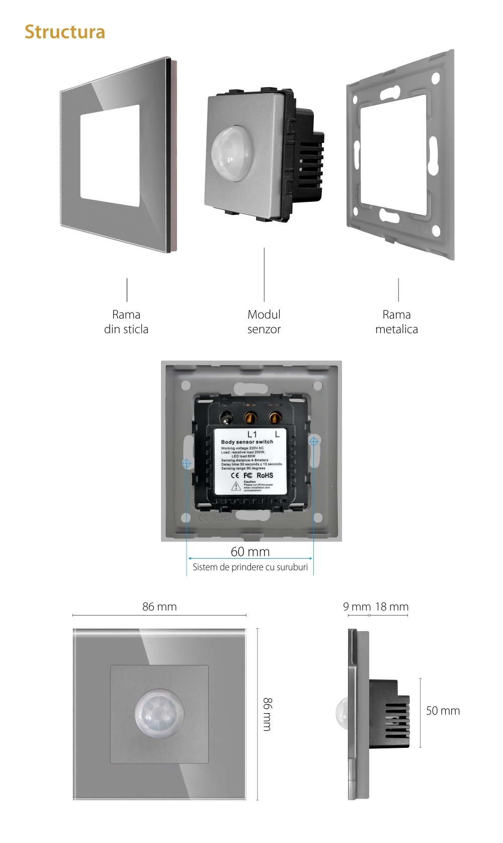 Specificatii Senzor Miscare PIR LUXION Rama Sticla