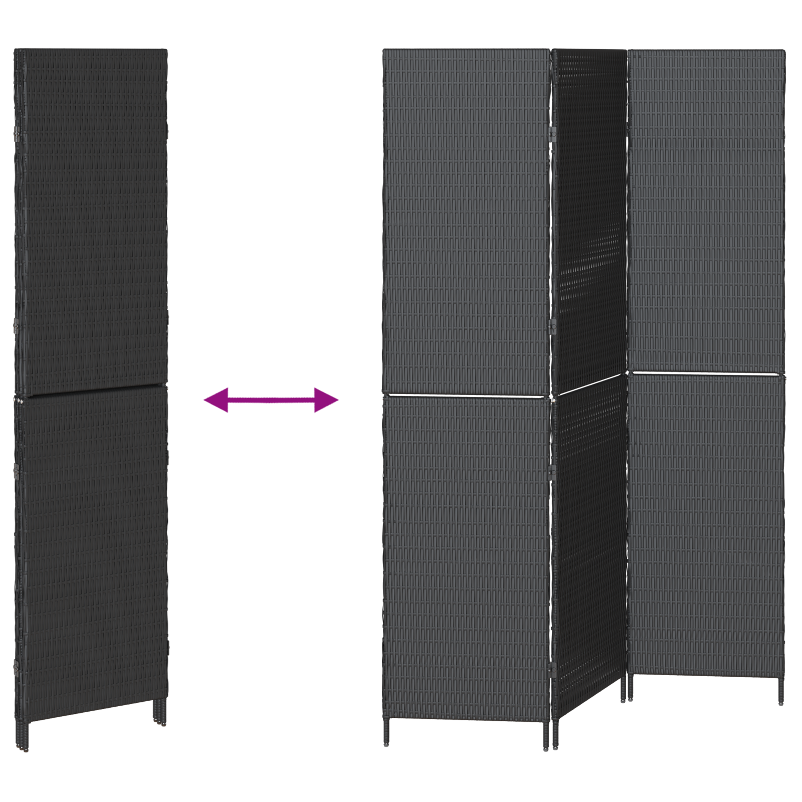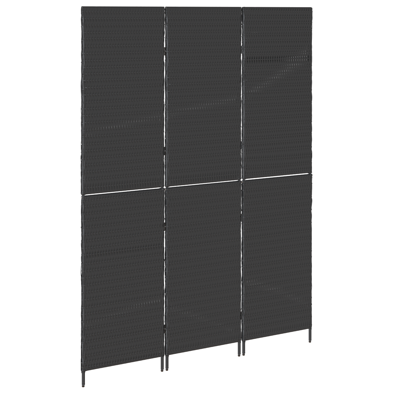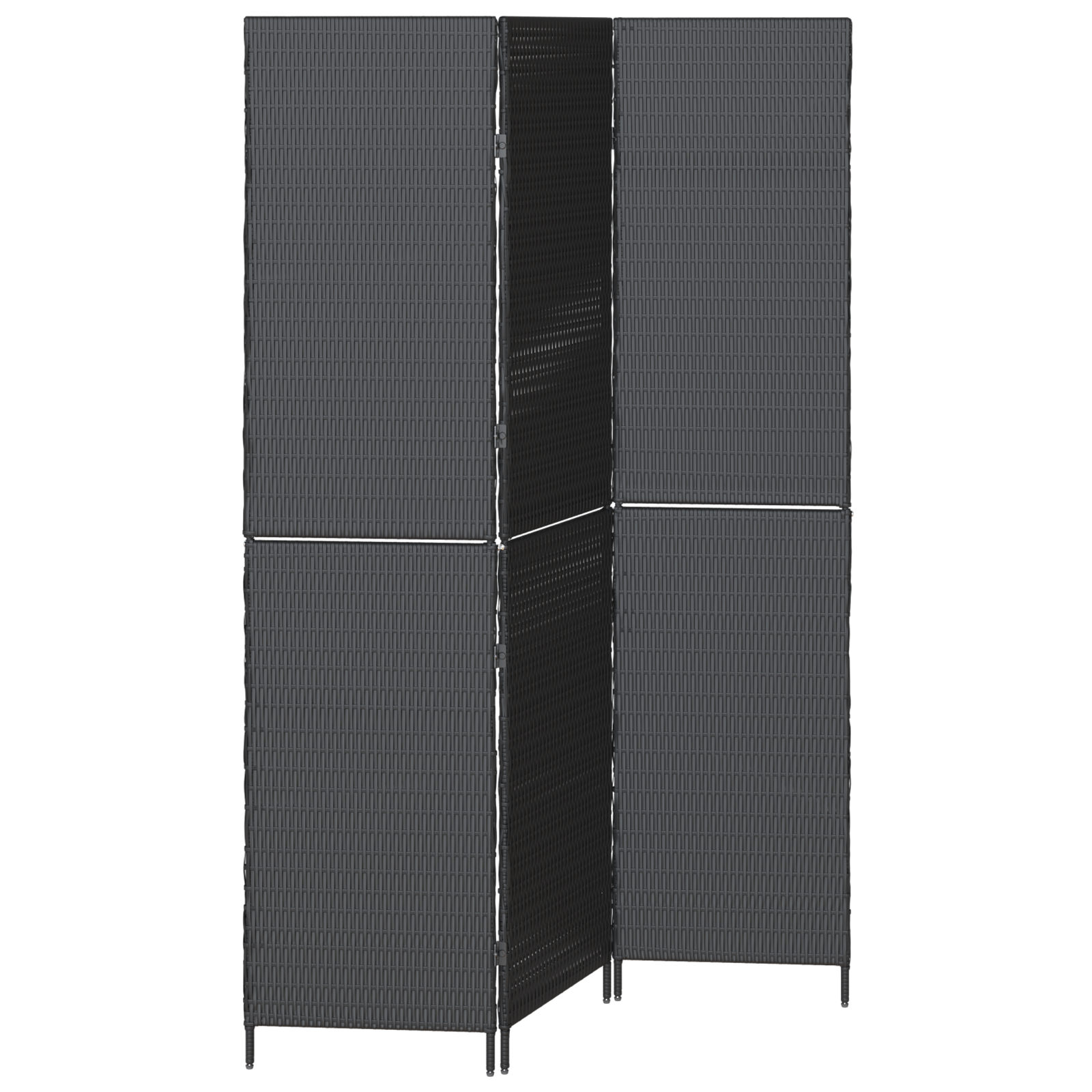 Separator Încăpere 3 Panouri Pliabil Negru 146x180 cm Poliratan GartenMobel Dekor