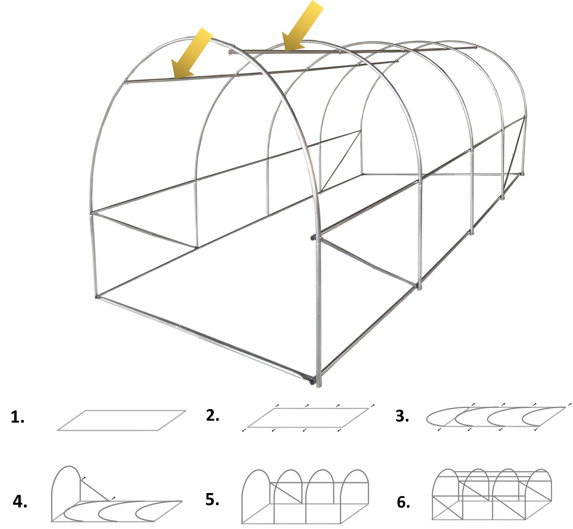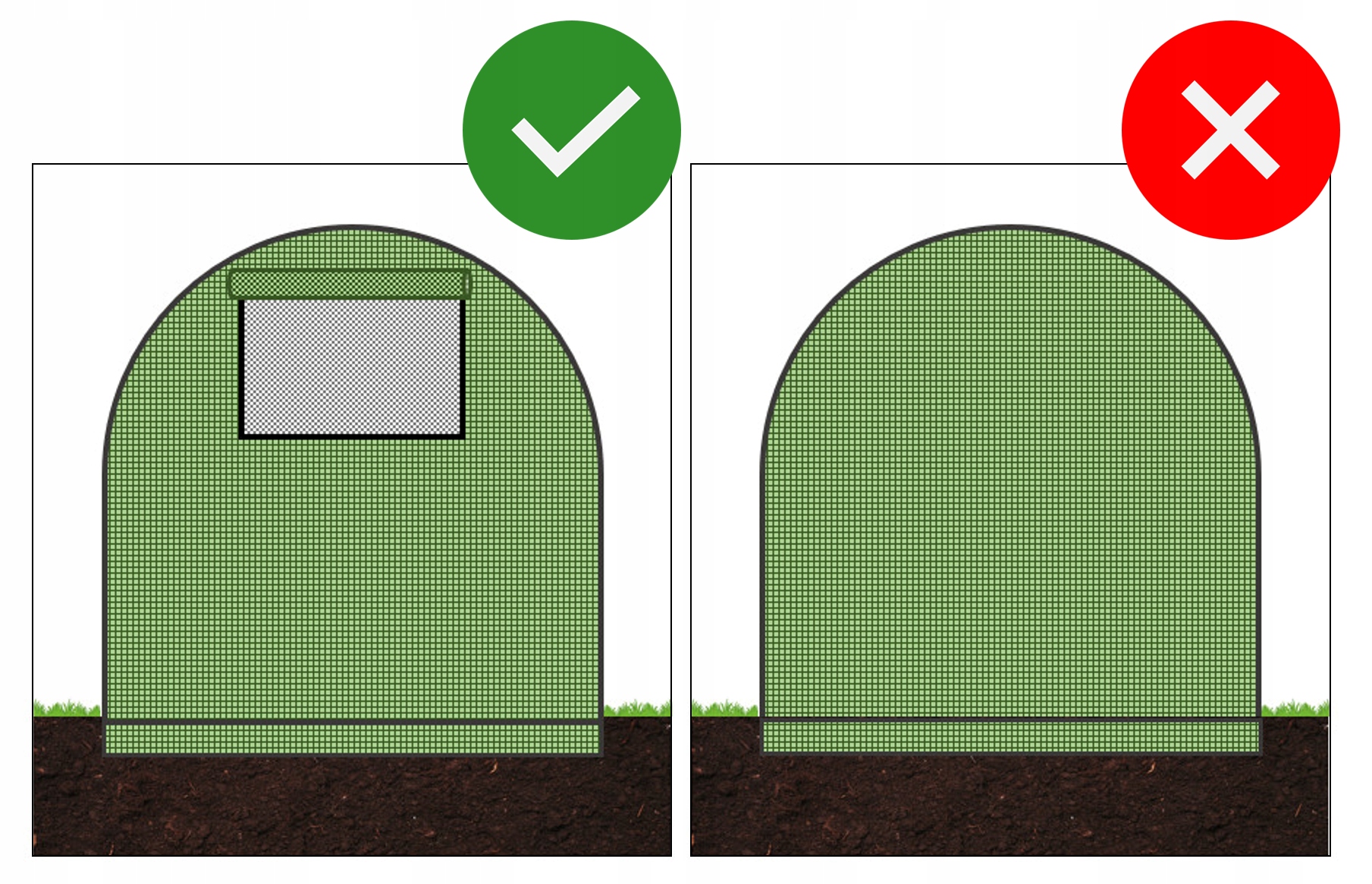 Modelul este prevazut cu cadru metalic galvanizat, folie rezistenta PE de 140 g/mp cu filtru UV4 si plasa PP incorporata, pentru o durabilitate mai buna si protectie impotriva ruperii. In plus, usa cu fermoar, ferestrele rulante cu plasa anti-insecte si fereastra suplimentara din spate ajuta la o aerisire eficienta in zilele calduroase.