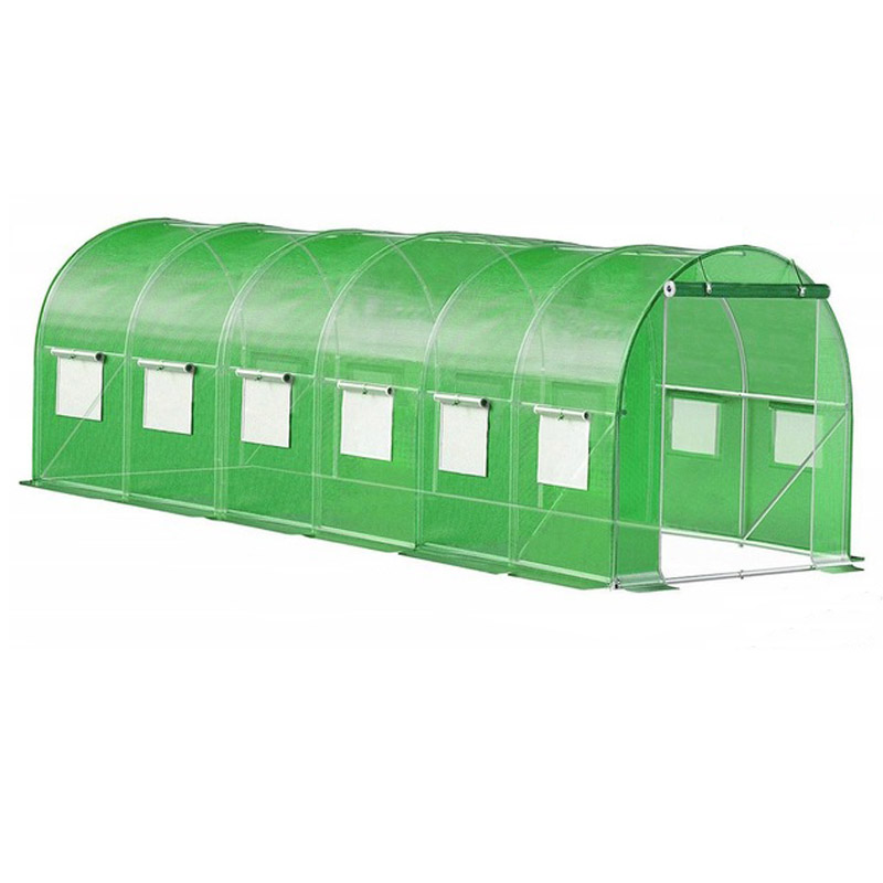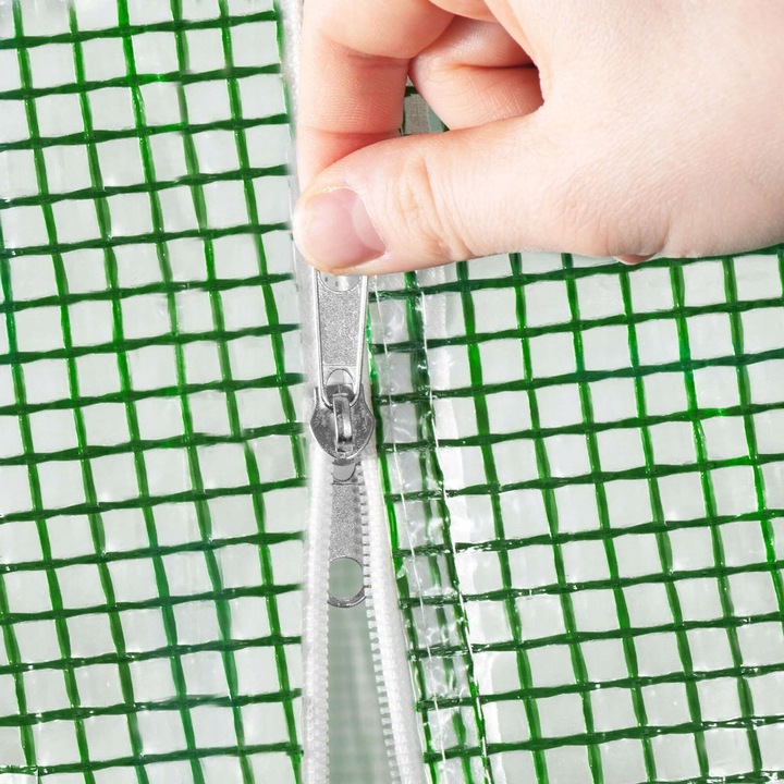 Aceasta sera de gradina tip tunel de 300x600 cm este o solutie practica si eficienta pentru cultivarea legumelor, rasadurilor si plantelor sensibile pe o suprafata generoasa de 18 mp. Construita pe un cadru metalic zincat si acoperita cu folie transparenta verde cu protectie UV, sera ajuta la mentinerea unui microclimat favorabil dezvoltarii plantelor, protejandu-le impotriva ploii, vantului, grindinei, soarelui puternic si daunatorilor.