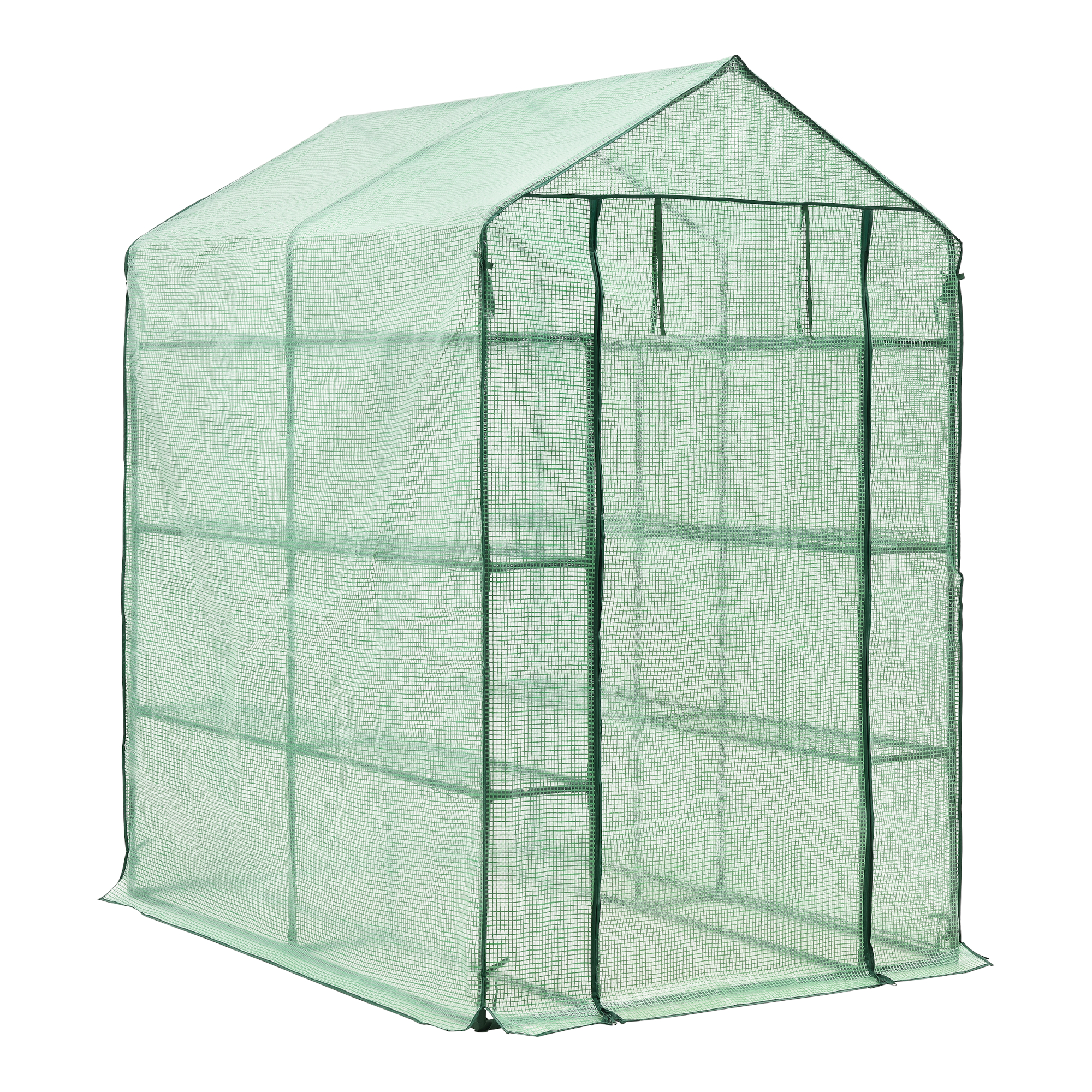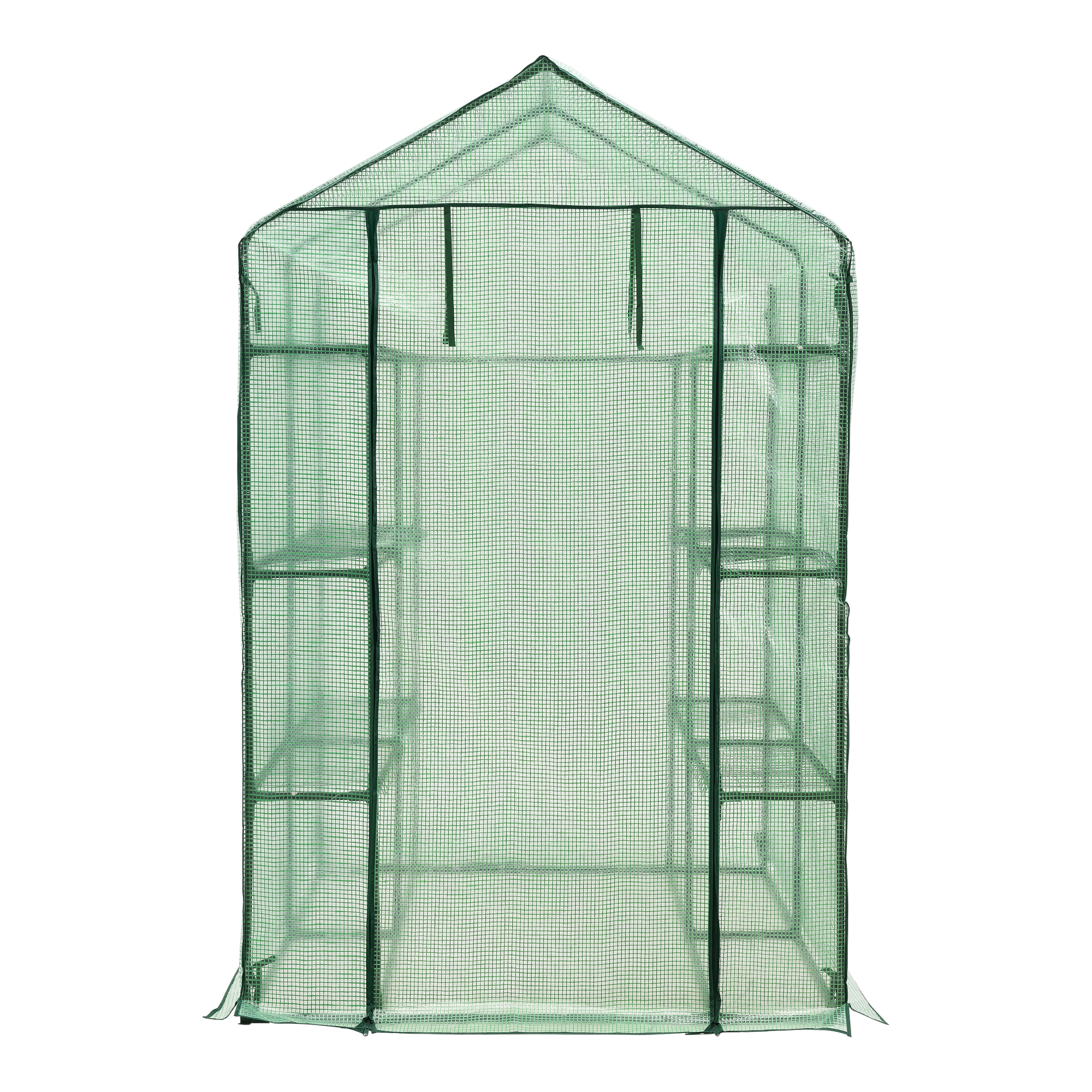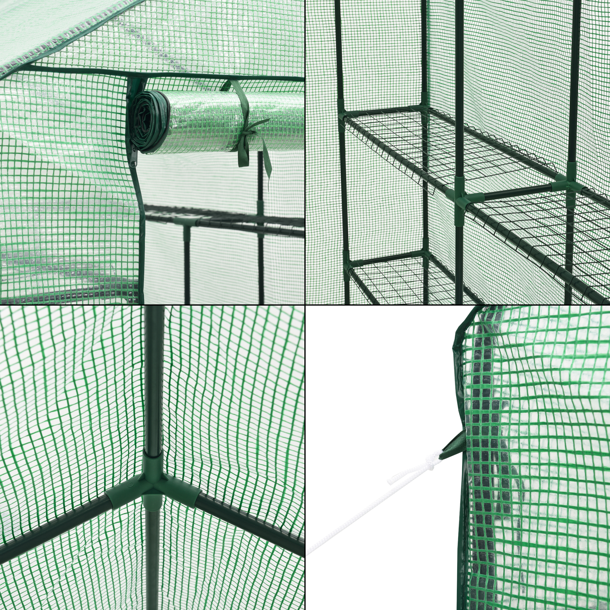 Datorită structurii accesibile și ușii frontale rulabile cu fermoar, sera permite o aerisire optimă și un acces comod la plante. Acoperișul în două ape favorizează scurgerea apei de ploaie, iar folia tip plasă din PE contribuie la menținerea unui mediu potrivit pentru dezvoltarea culturilor. Este o alegere inspirată pentru curte, grădină sau zone dedicate răsadurilor.