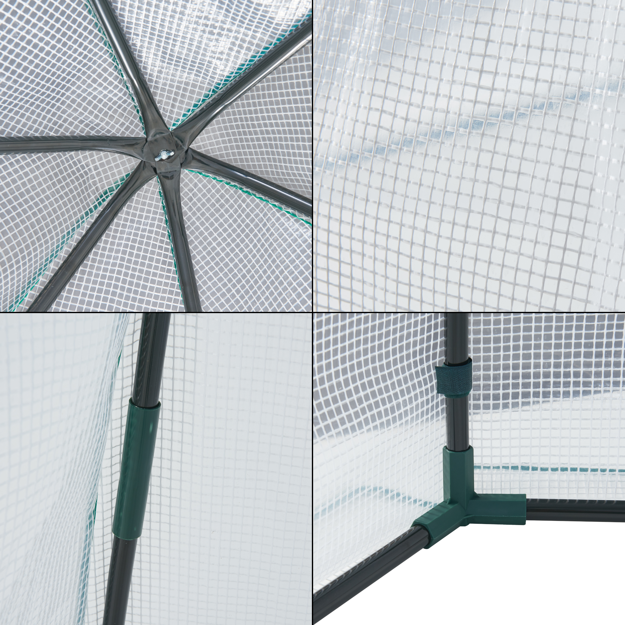 Usa este prevazuta cu fermoar, ce asigura accesul comod, daca doriti sa udati sau sa fertilizati plantele. Un geam din plasa, care poate fi ridicat, asigura aerisirea perfecta si protejeaza impotriva vizitatorilor nepoftiti.