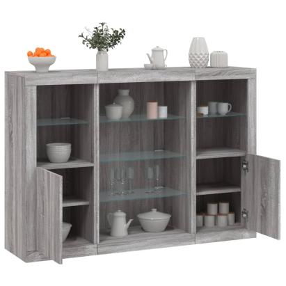 Servantă cu lumini LED, 3 buc., gri sonoma, lemn prelucrat GartenMobel Dekor
