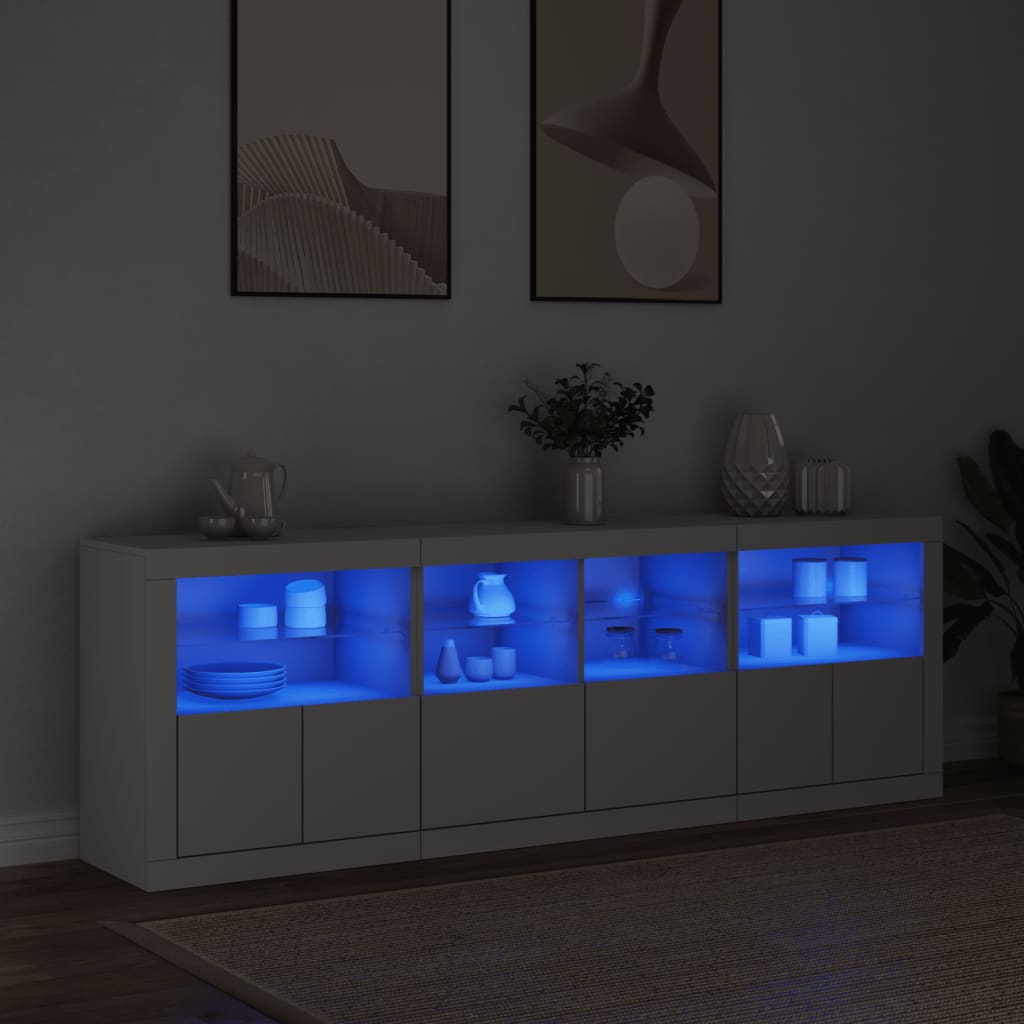 Servantă cu lumini LED, alb, 202x37x67 cm GartenMobel Dekor