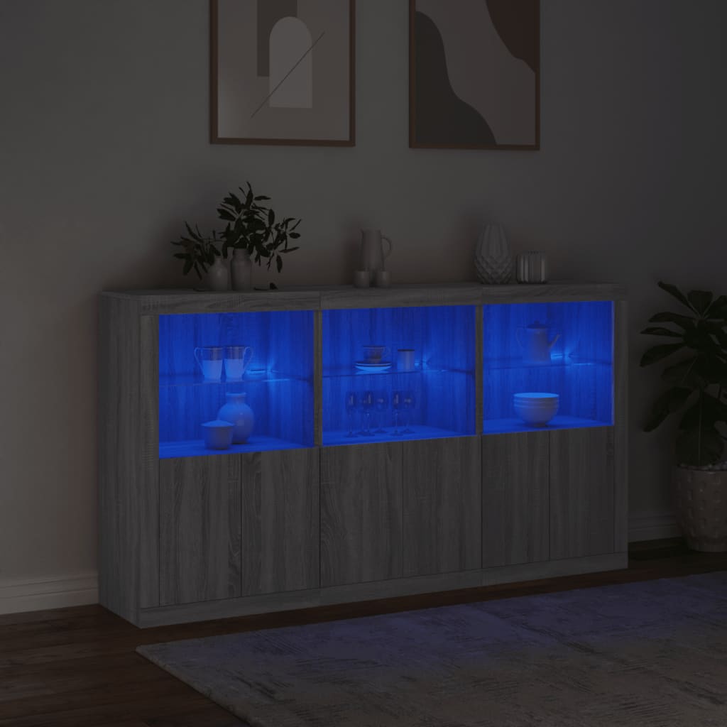 Servantă cu lumini LED, gri sonoma, 181,5x37x100 cm GartenMobel Dekor