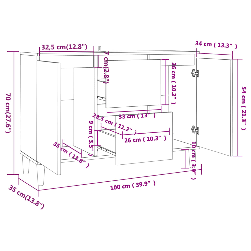 Descriere Servantă, sonoma gri, 103,5x35x70 cm, lemn
