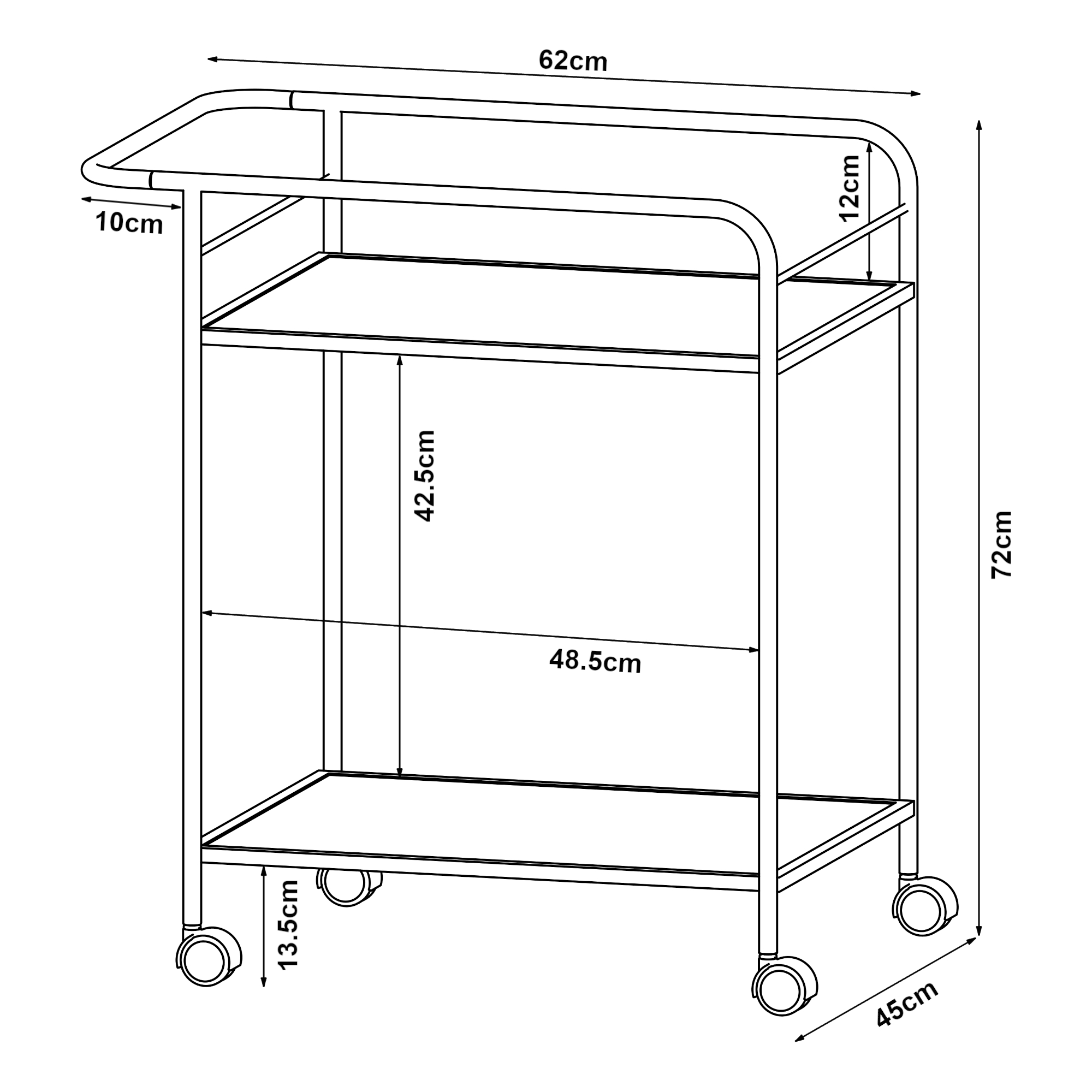Dieser praktische Servierwagen ist die ideale Ergänzung für Ihr Zuhause oder Ihren Arbeitsplatz. Mit seinen vier leichtgängigen Rollen lässt er sich mühelos bewegen und bietet eine flexible Nutzung in verschiedenen Räumen.