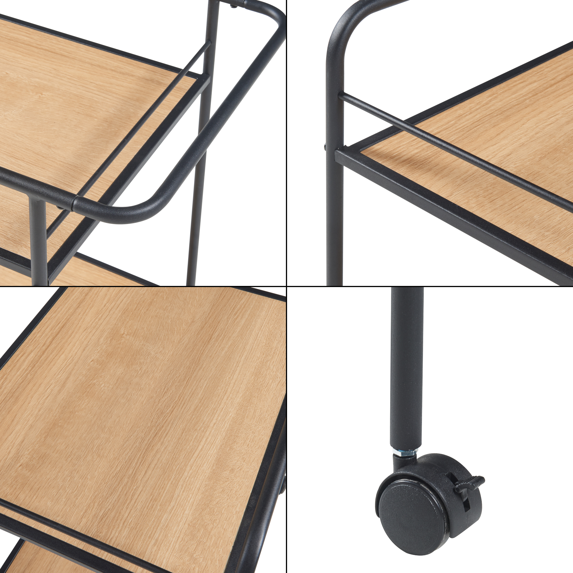 Descriere Servierwagen Hole Schwarz/Eiche-Optik [en.casa]