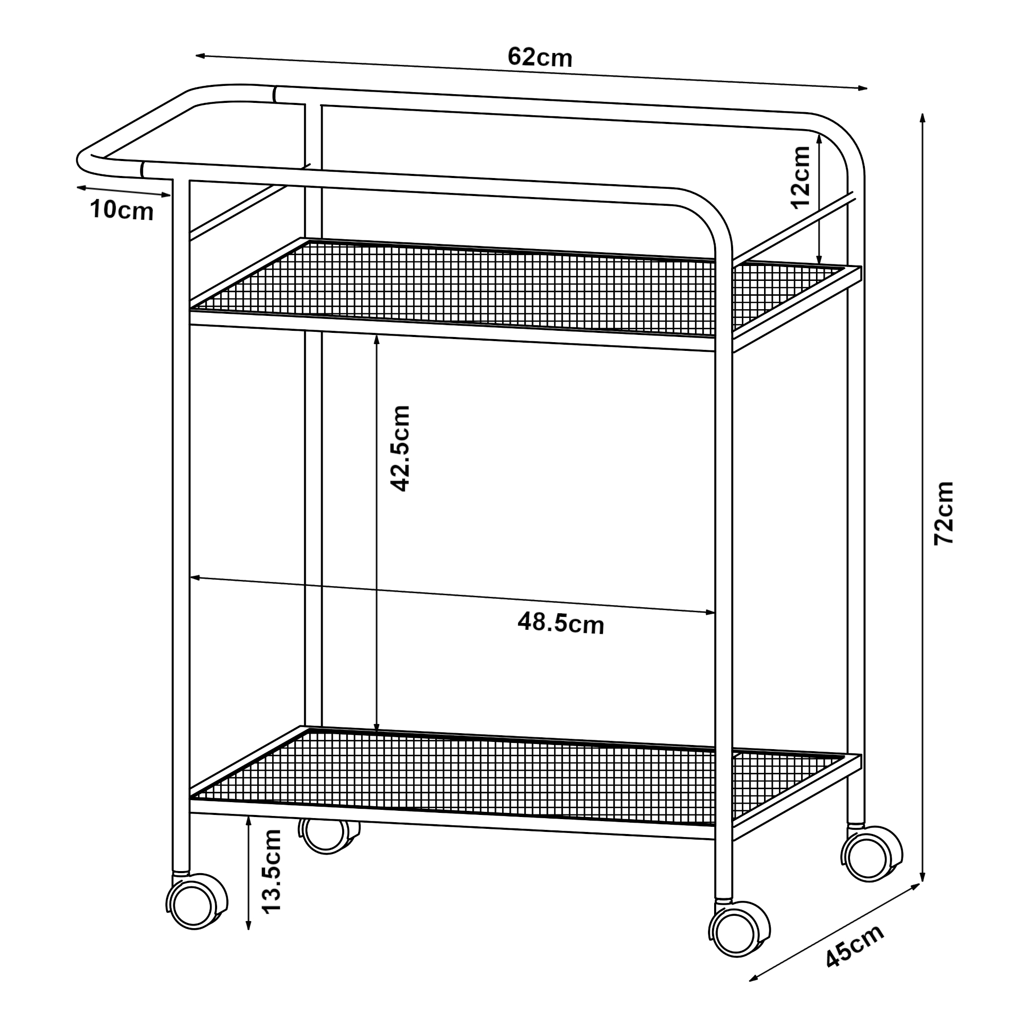 Dieser praktische Servierwagen ist die ideale Ergänzung für Ihr Zuhause oder Ihren Arbeitsplatz. Mit seinen vier leichtgängigen Rollen lässt er sich mühelos bewegen und bietet eine flexible Nutzung in verschiedenen Räumen.