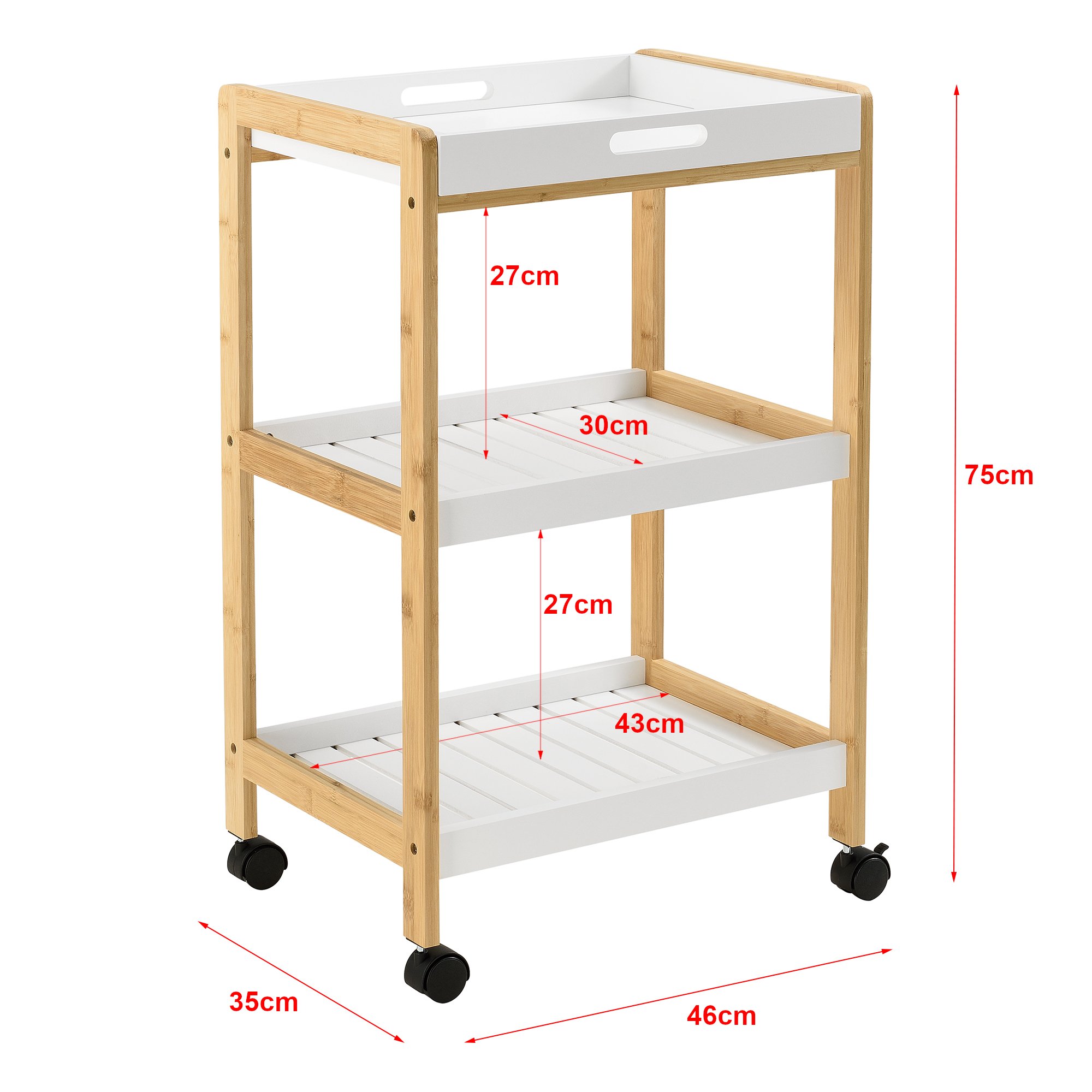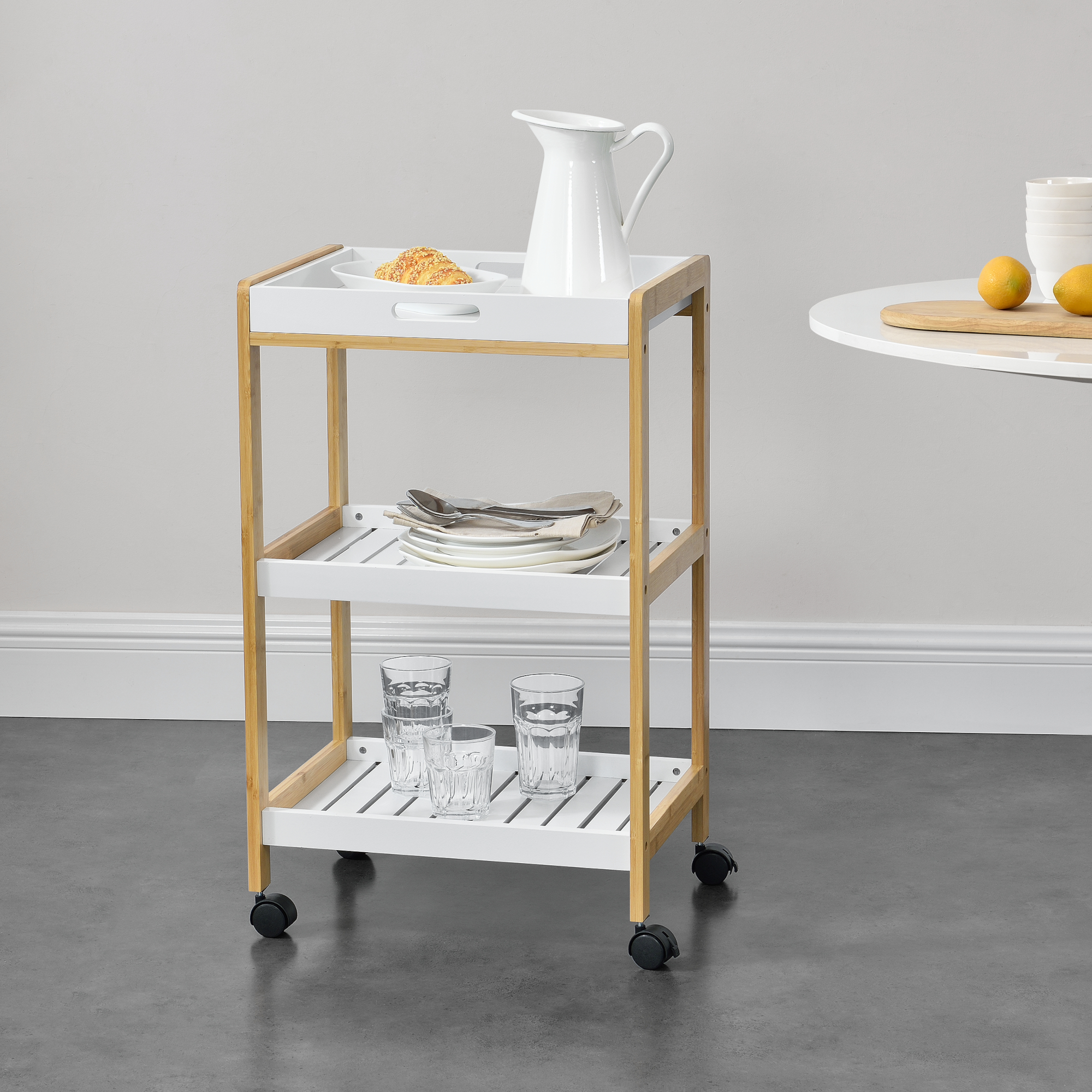 Servierwagen Lugano 75x46x35 cm Rollwagen mit Ablage Weiß/Natur en.casa