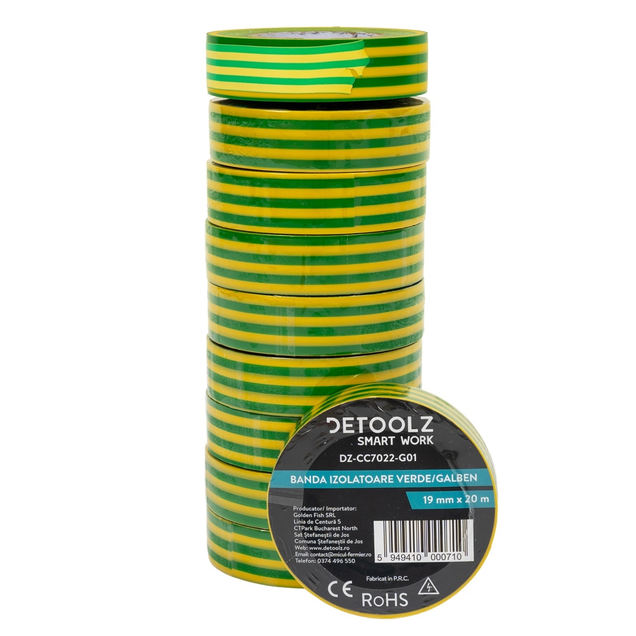 Set 10 benzi izolatoare Detoolz 19 mm x 20 m verde/galben, G01