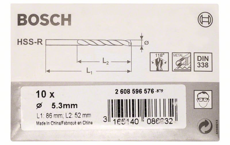 Set 10 burghie pentru metal Bosch HSS-R DIN 338, 5,3 x 52 x 86 mm