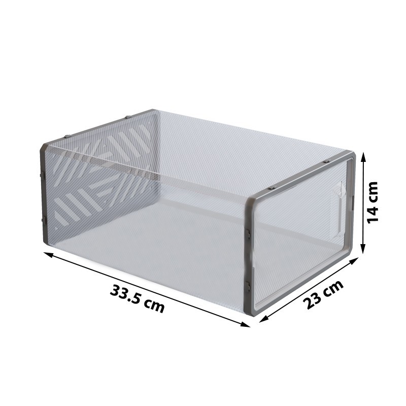 Fiecare cutie are dimensiunea de 33.5 x 23 x 14 cm si este confectionata din material plastic rezistent si transparent care va ofera o imagine de ansamblu a continutului cutiei.