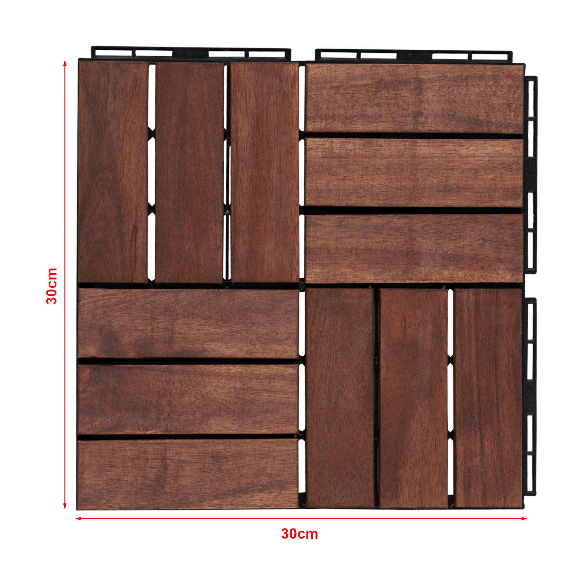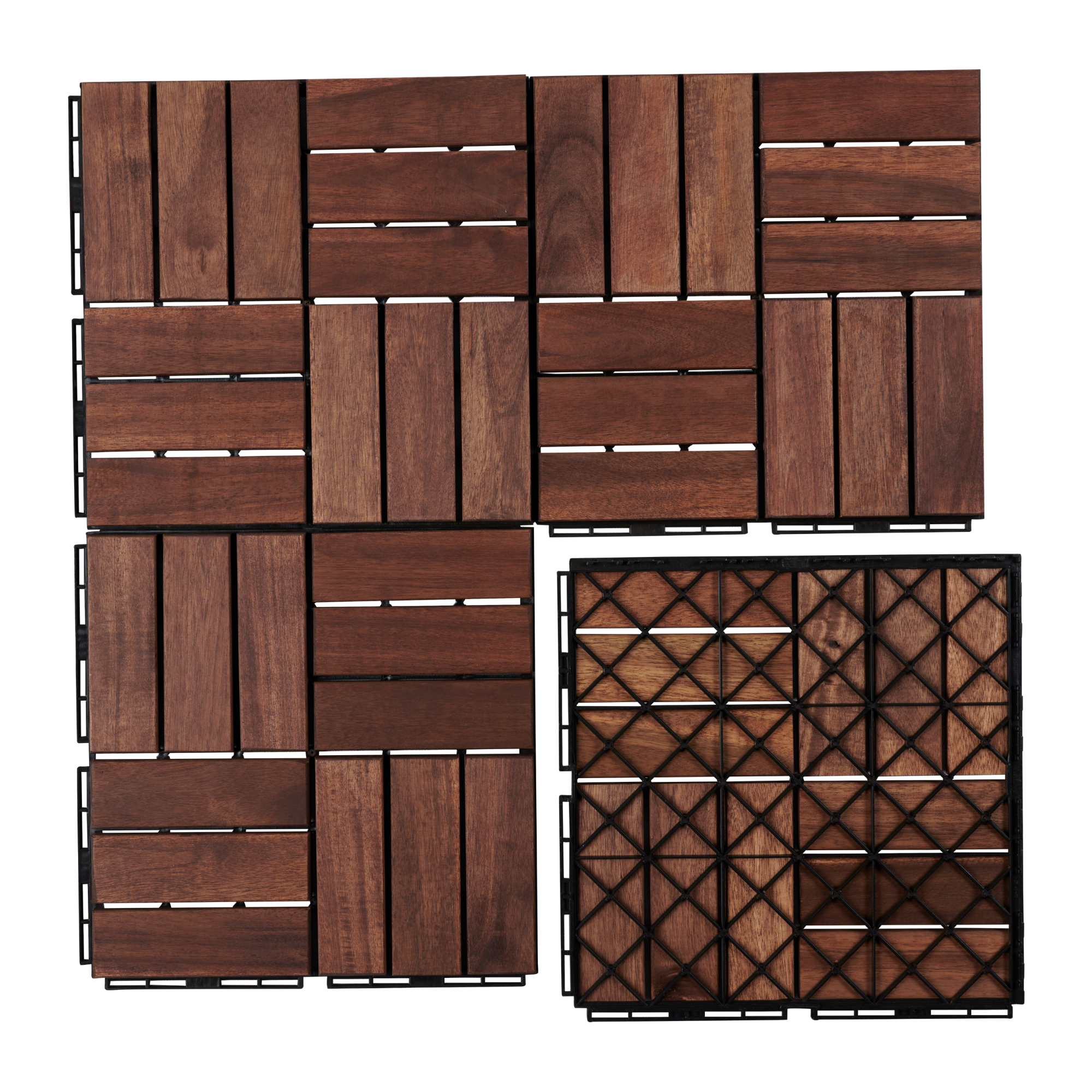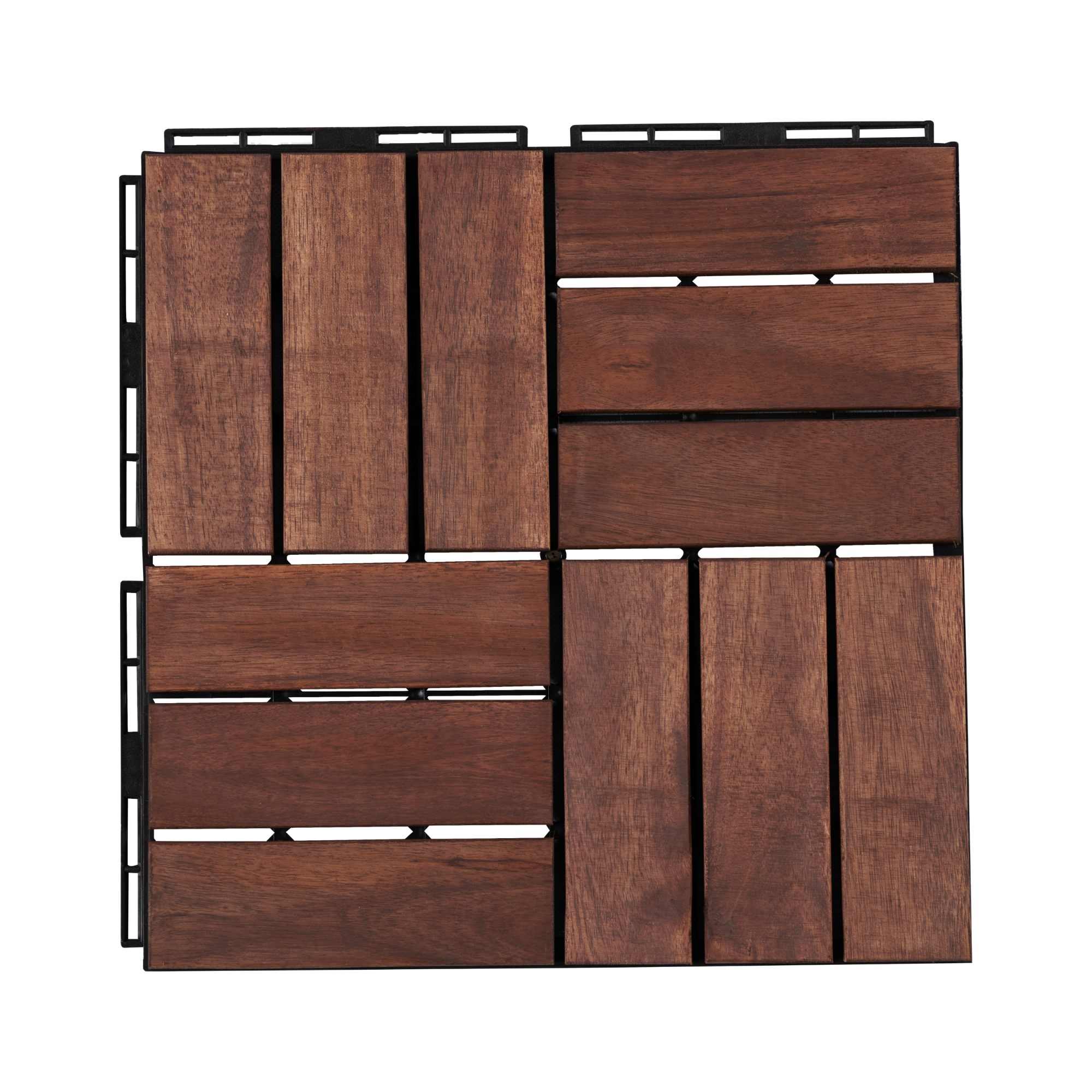Set 10 dale deck din lemn de acacia maro, montaj click, 30 x 30 cm