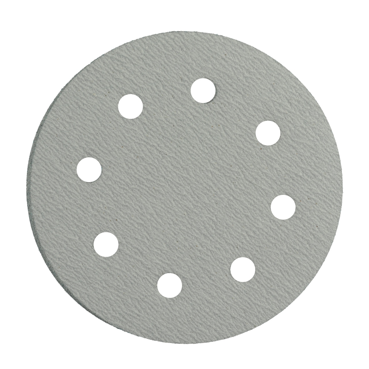 Datorită celor 8 găuri, discurile ajută la o aspirare mai bună a prafului, reduc încărcarea abrazivului și contribuie la o durată de utilizare mai mare. Sistemul cu prindere tip arici (Velcro) face schimbarea rapidă și ușoară.