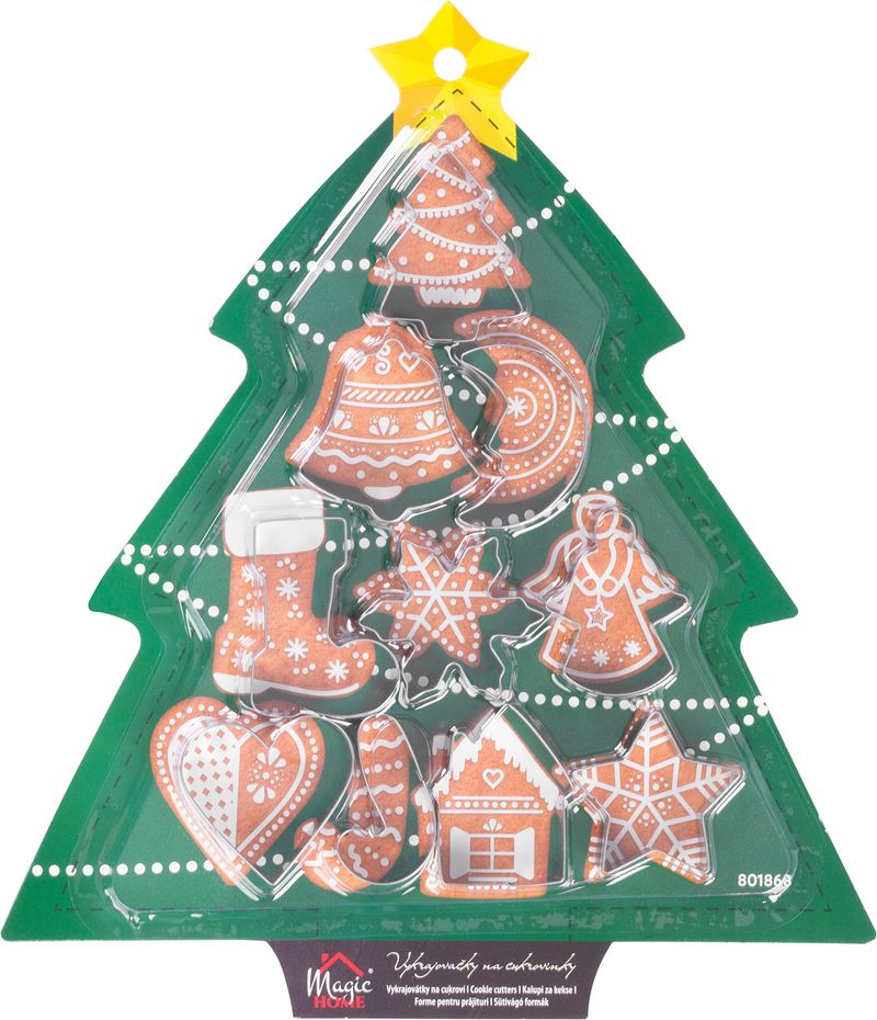 Setul de forme de decupat MagicHome aduce rapid atmosfera de sărbătoare în bucătăria ta. Cu 10 formițe de Crăciun poți realiza fursecuri, turtă dulce și alte deserturi cu modele simpatice, perfecte pentru platouri festive și cadouri făcute în casă.