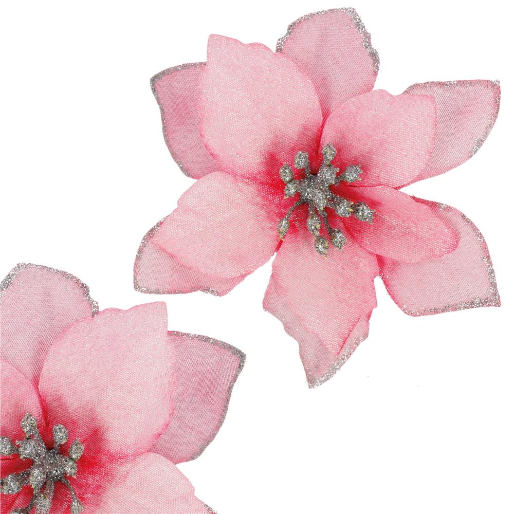 Set 10 ornamente de Craciun Poinsettia roz cu clips, 13 cm