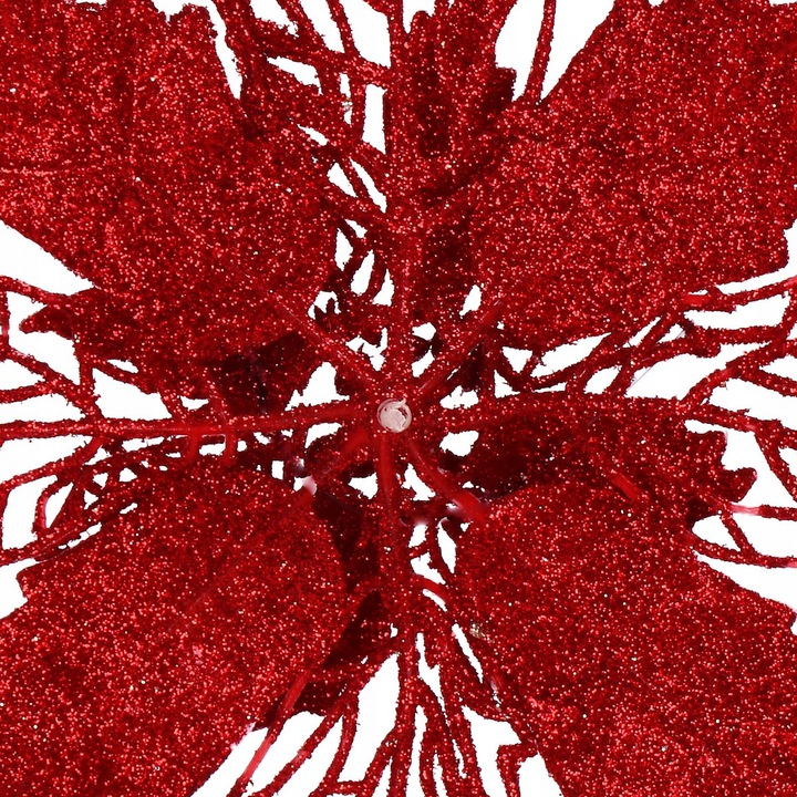 Set 10 ornamente de Craciun Poinsettia visiniu, 16 cm, cu clema