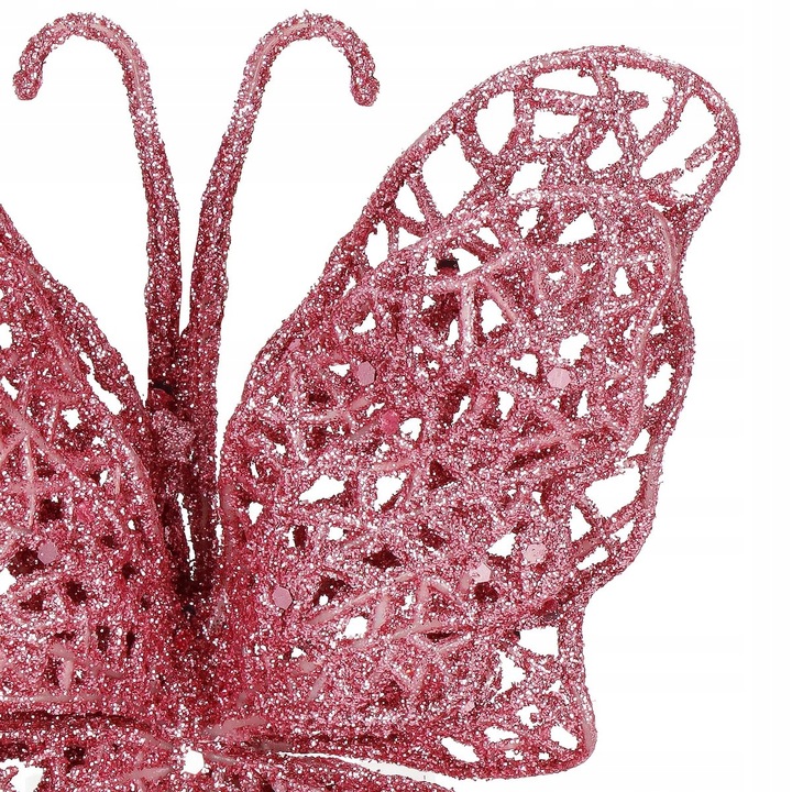 Set 10 ornamente fluturi roz cu sclipici pentru brad, 16 cm