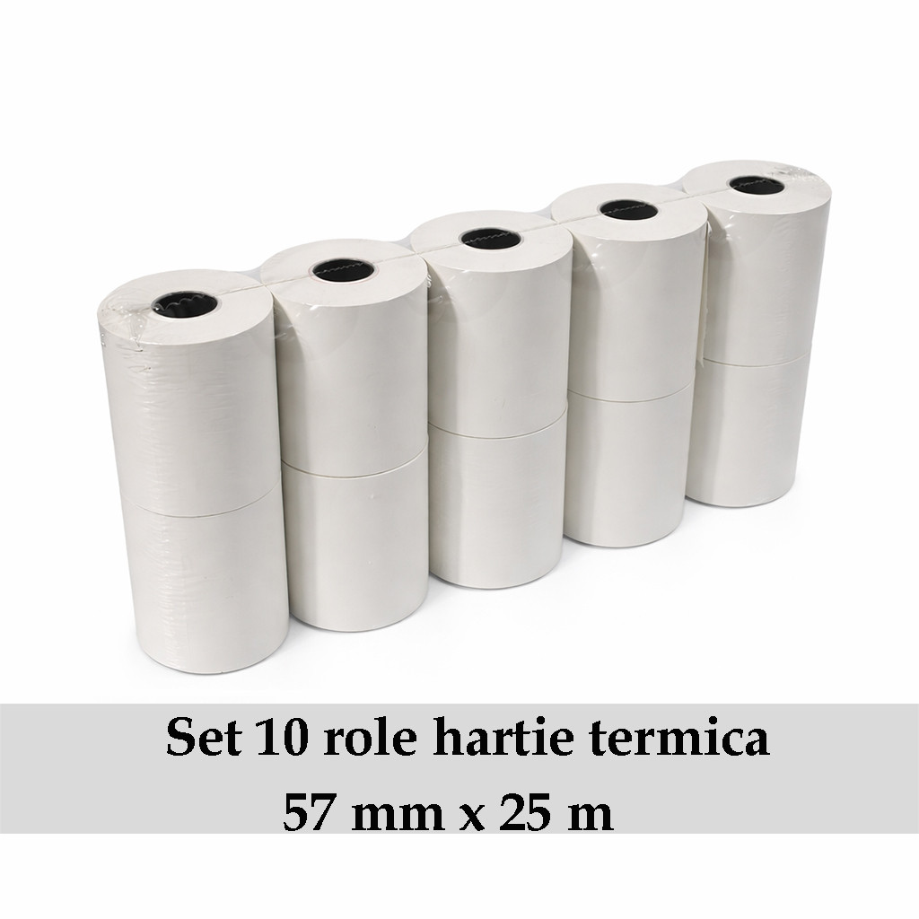 Set 10 role hârtie termică 57 mm x 25 m, 48 g/mp pentru casa de marcat