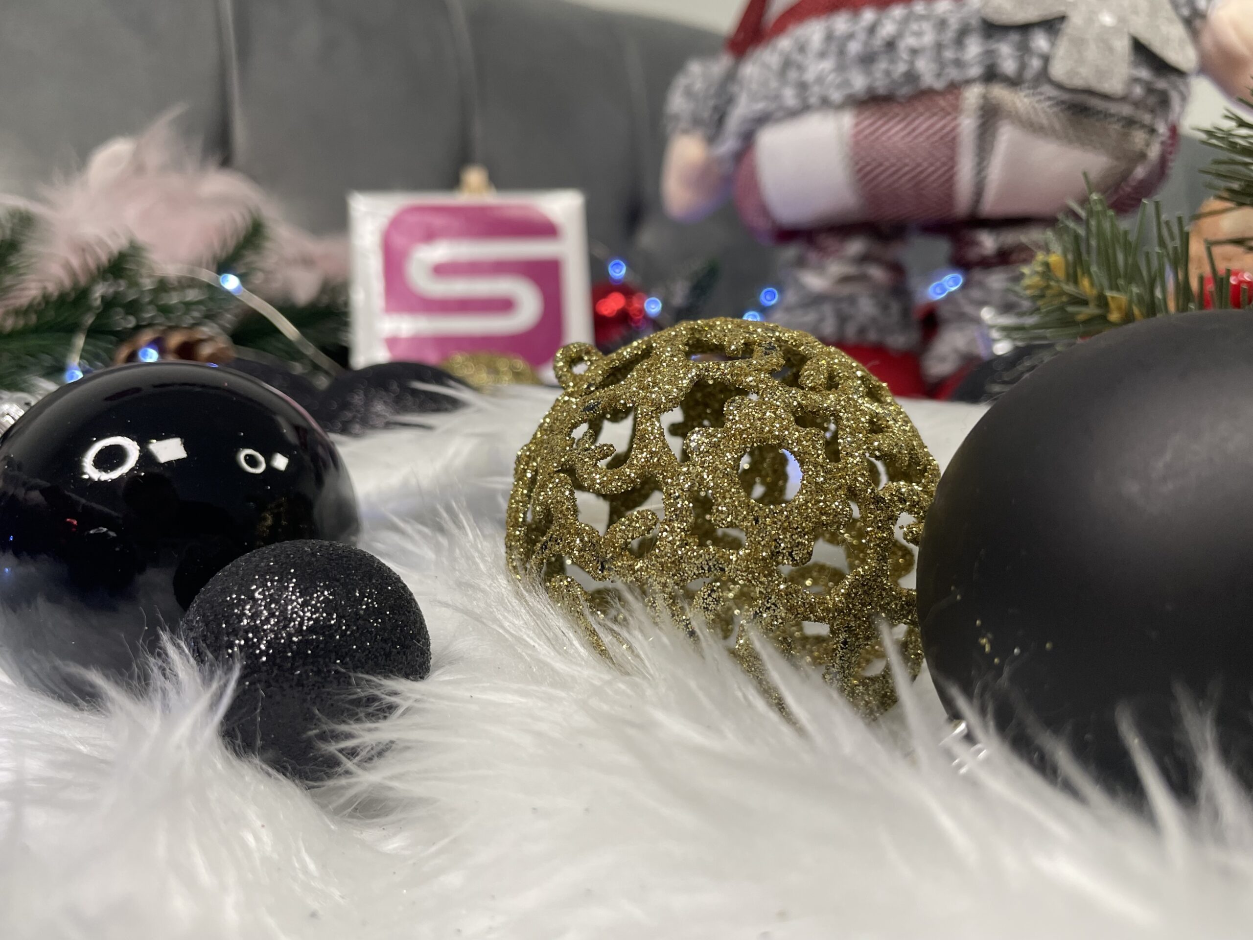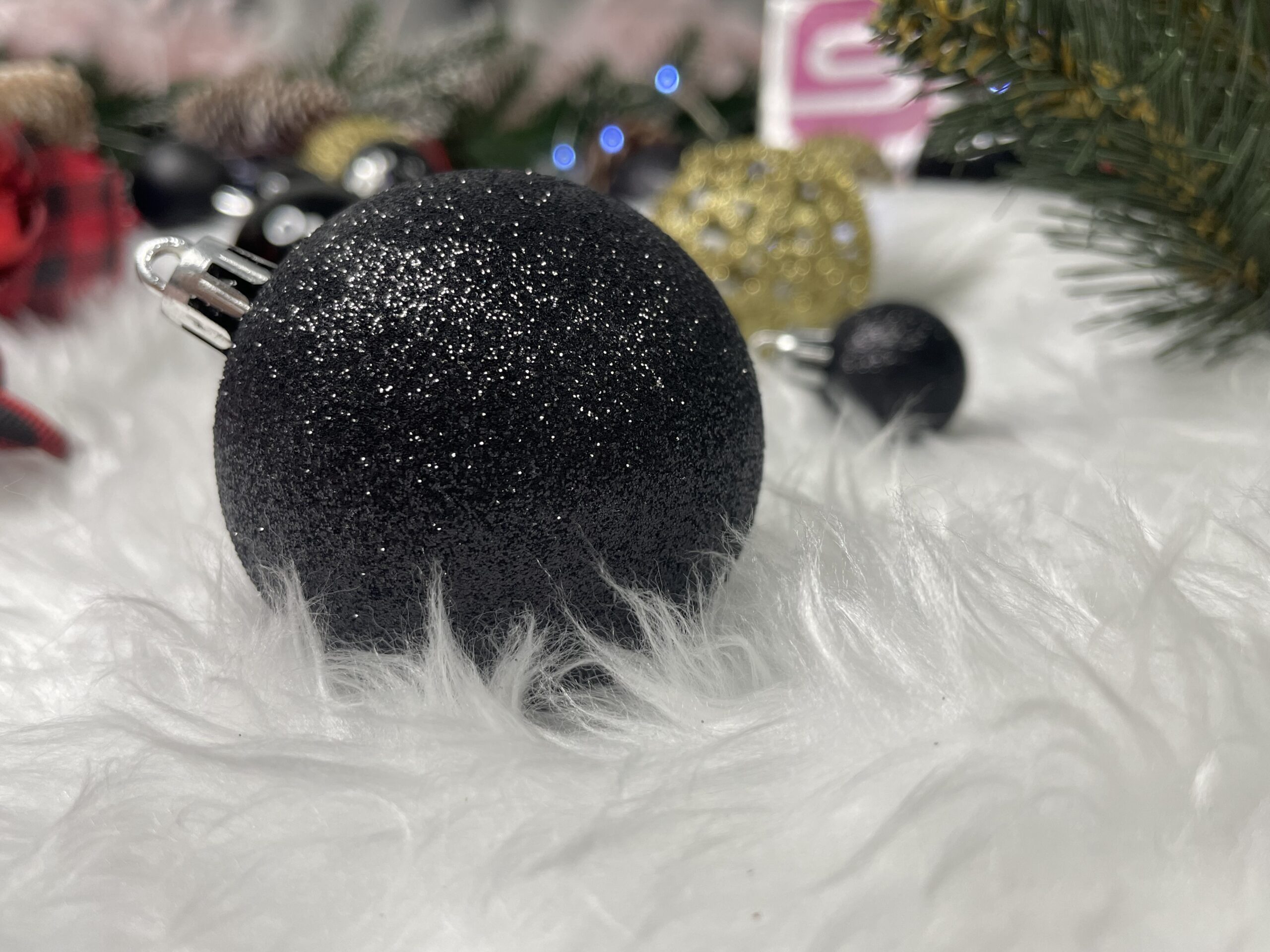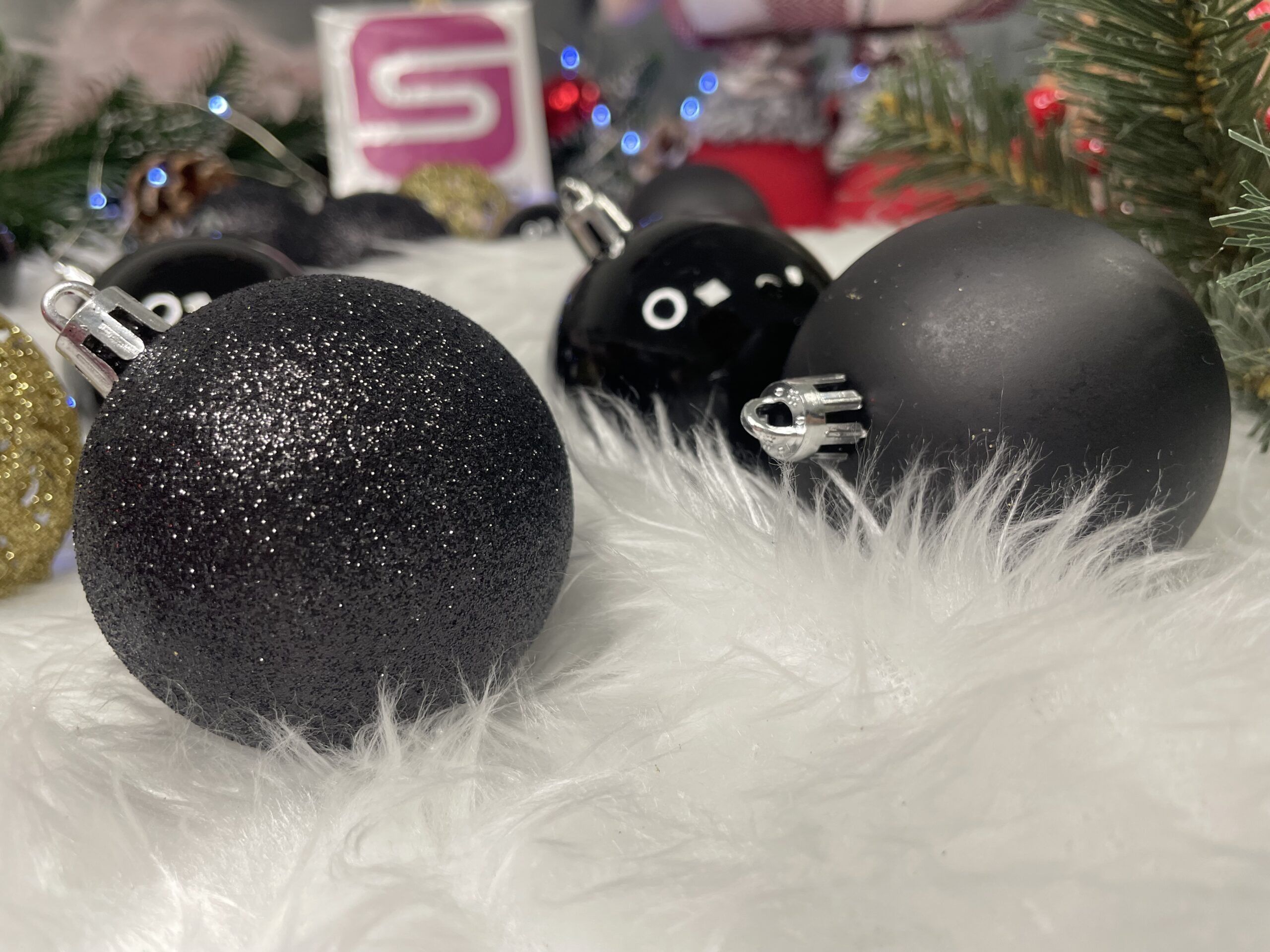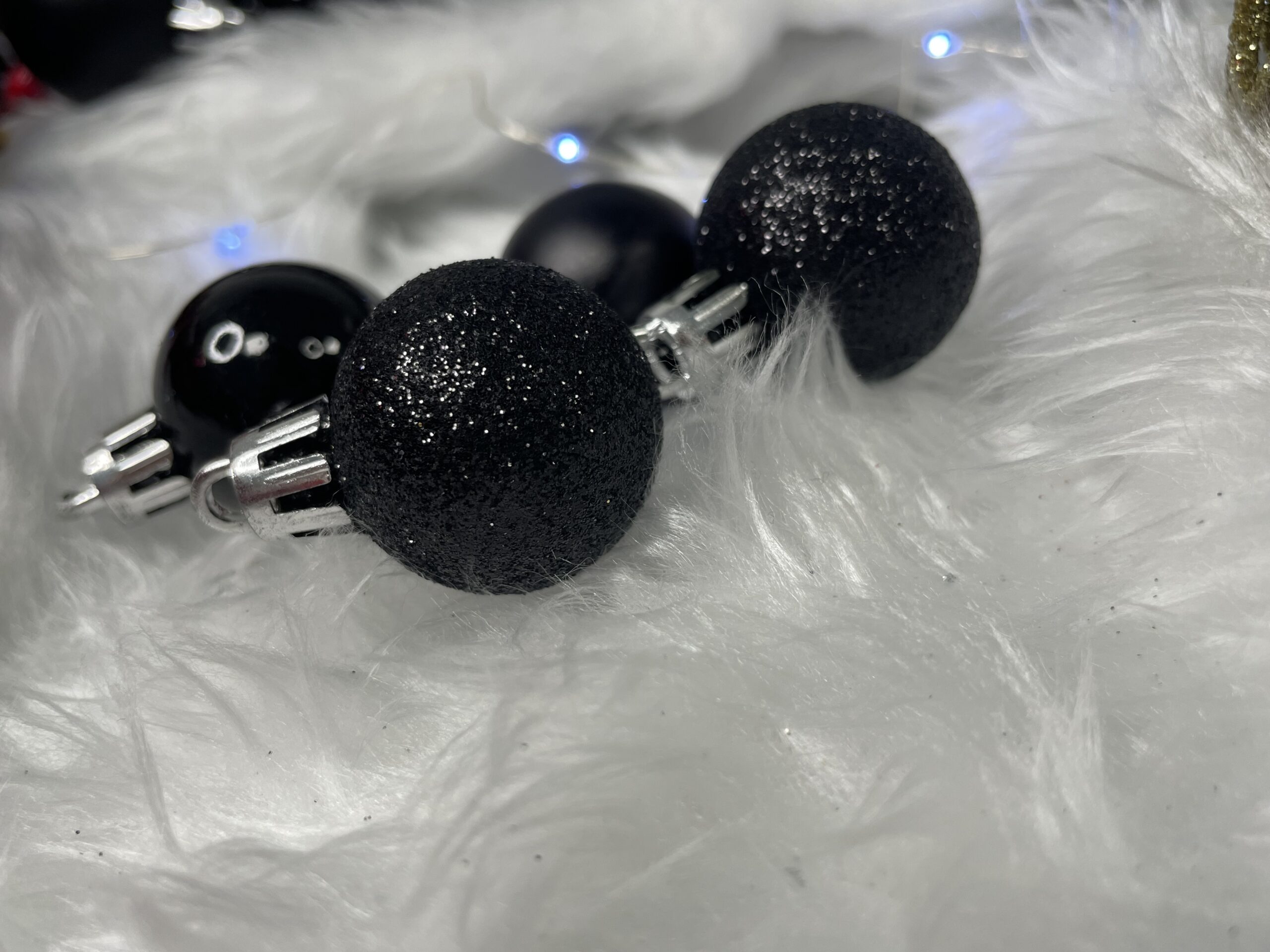 Set 100 globuri de Craciun negre si aurii, 3-6 cm, din plastic