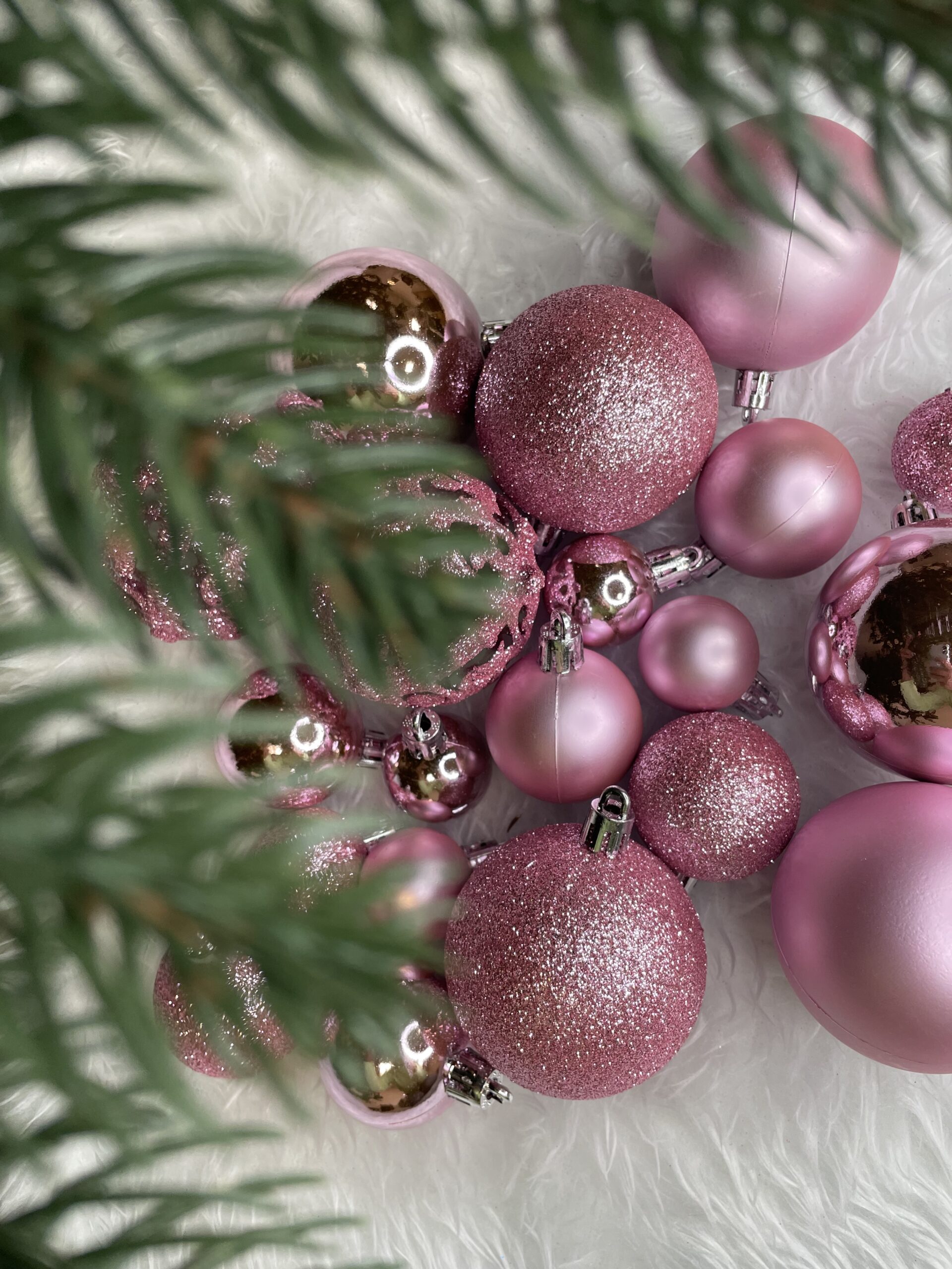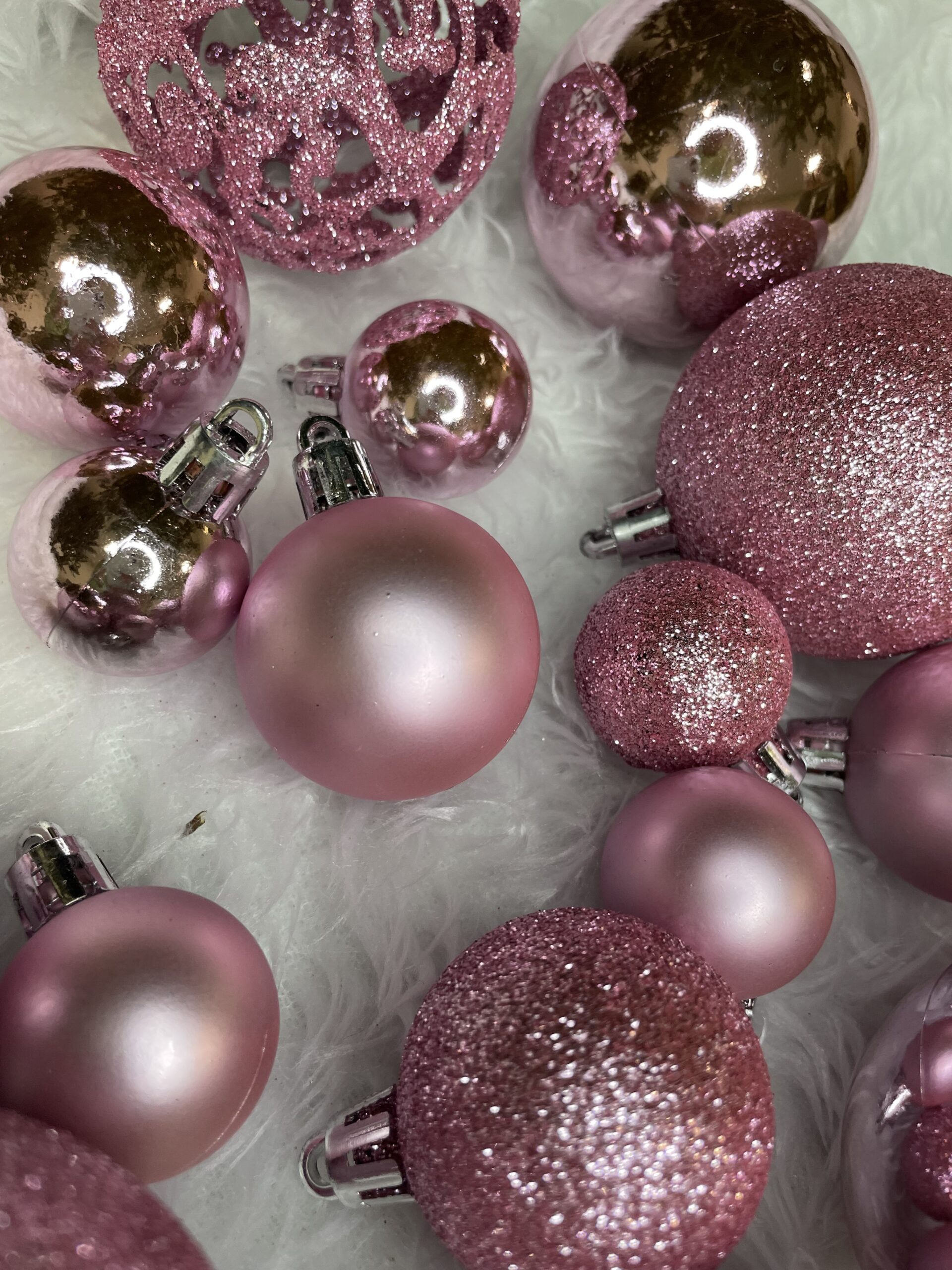 Set 100 globuri de Craciun roz, 3-6 cm, din plastic rezistent