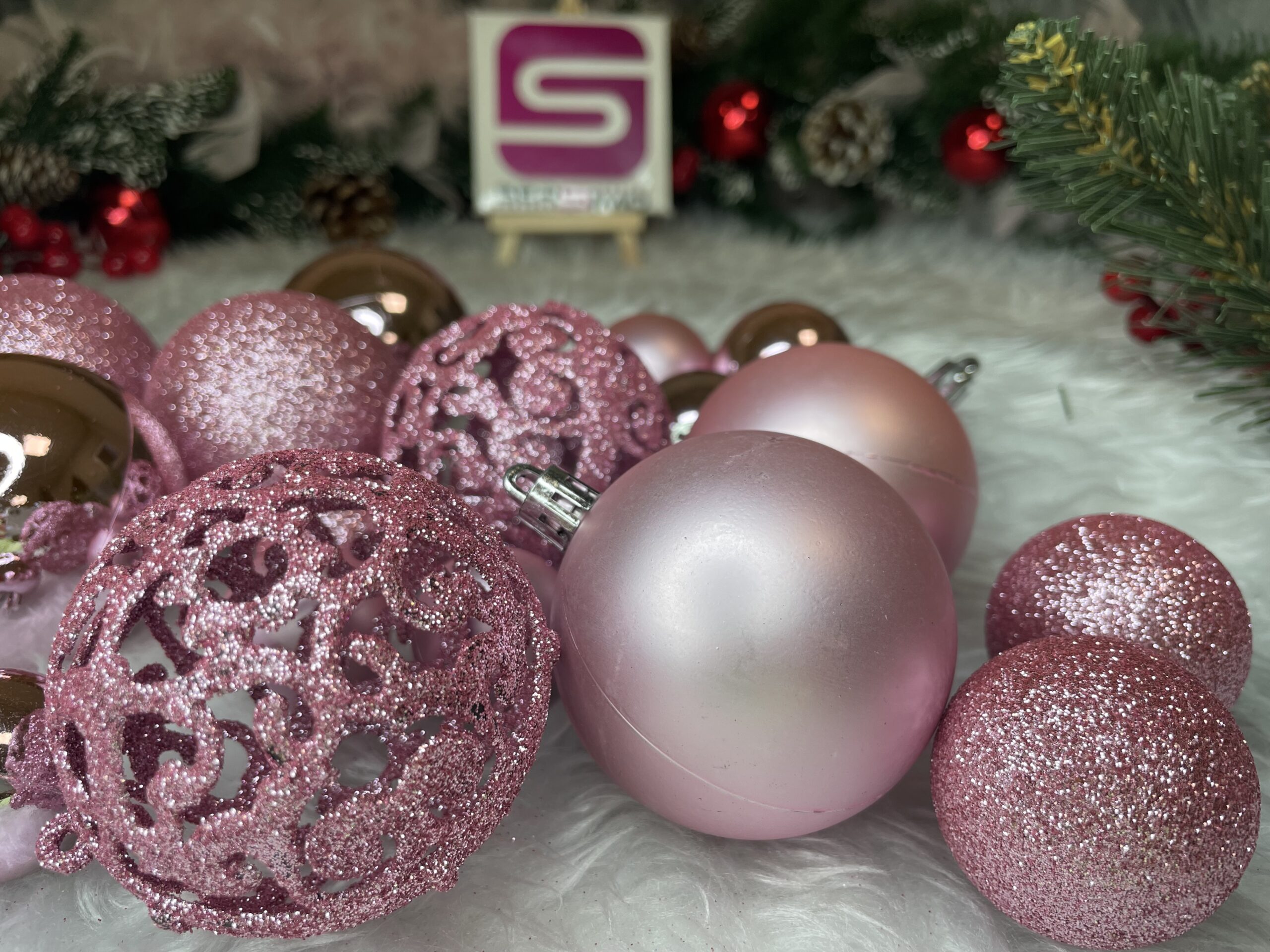 Descriere Set 100 globuri Craciun roz, 3-6