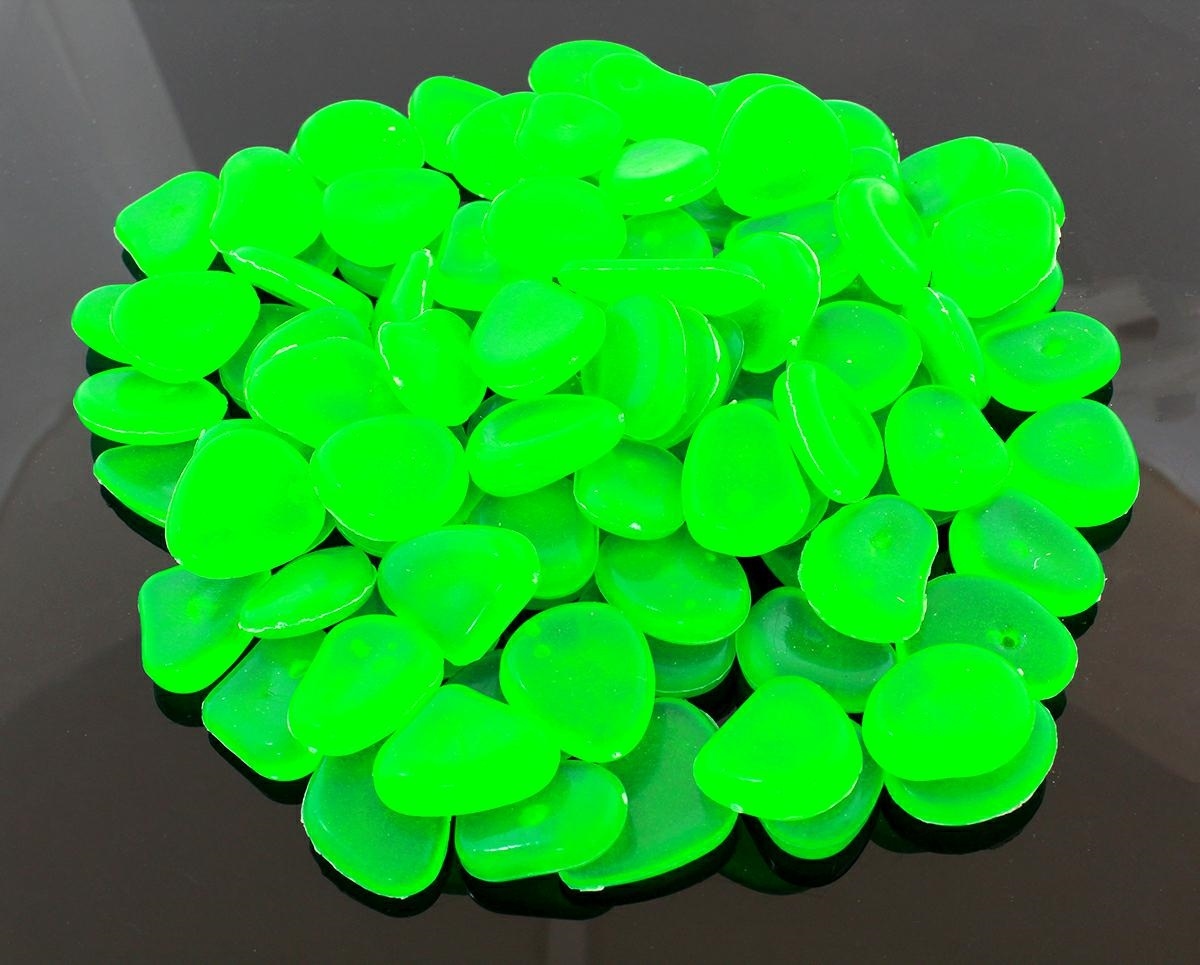 Pietre minunate, strălucitoare, dintr-un material special, care „se incarca” cu lumină ziua și o redă noaptea. Datorită proprietăților fluorescente, pietricelele creează o strălucire caracteristică care face o impresie uimitoare după apus și în camerele întunecate! Sunt perfecte ca decor interior de grădină sau de casă.