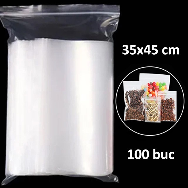 Set 100 pungi cu fermoar ZIP 350x450 mm pentru ambalare si depozitare in conditii de igiena si siguranta a produselor.
