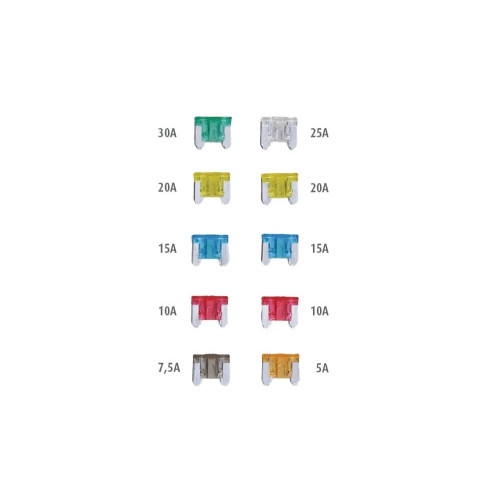 Set 100 siguranțe auto mini (OEM), 5–30A – cutie 100 bucăți