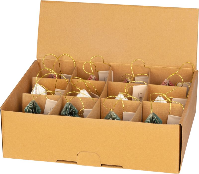 Realizate din hârtie de calitate, aceste decorațiuni de Crăciun sunt ușoare, practice și pot fi folosite atât în brad, cât și în aranjamente decorative, coronițe sau decorațiuni suspendate. Mixul de culori elegante oferă un aspect deosebit, potrivit atât pentru interioare clasice, cât și moderne.