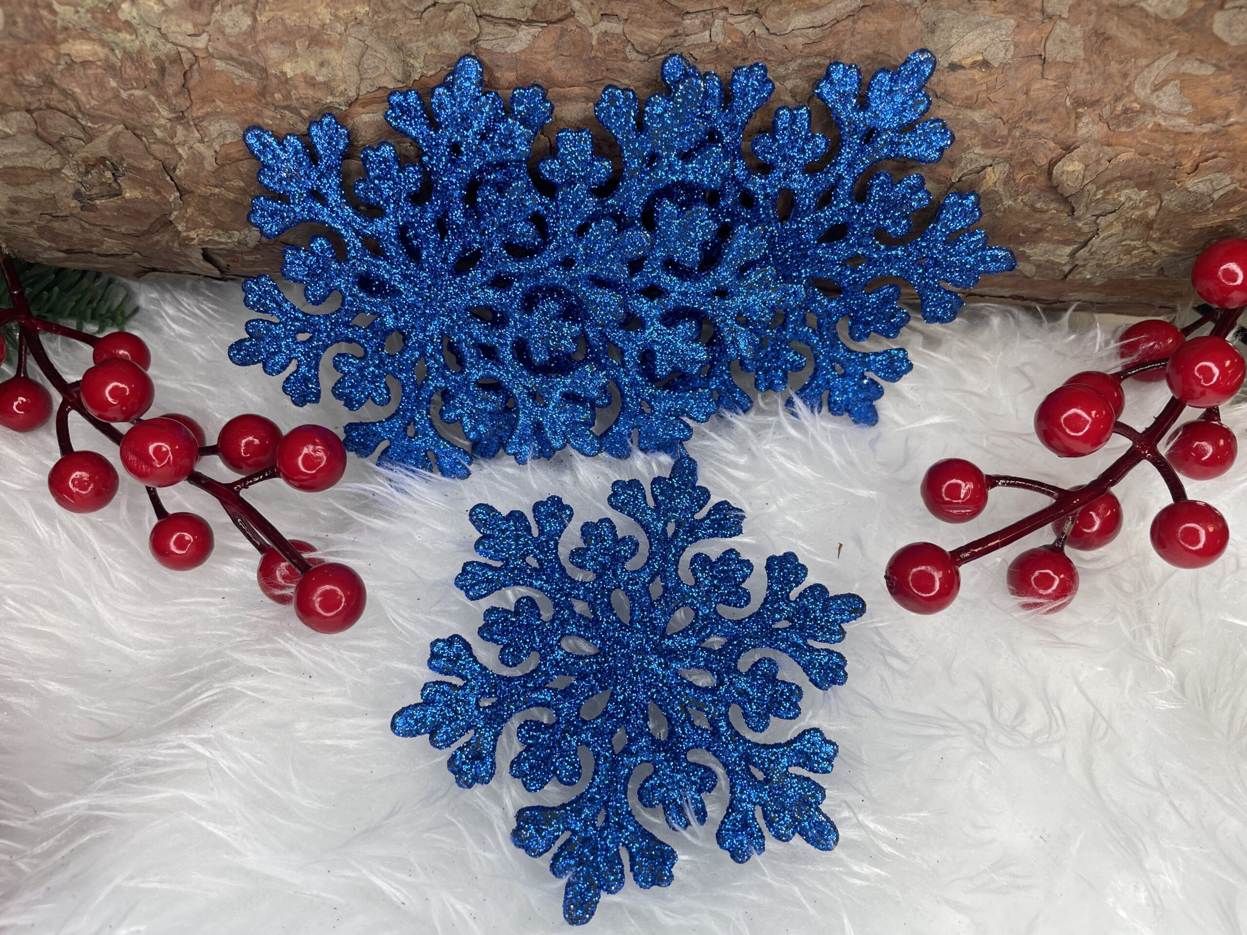 Adauga un plus de farmec bradului de Craciun cu acest set de decoratiuni pentru brad in forma de fulg de zapada. Cele 12 piese in nuanta albastra, cu finisaj stralucitor, creeaza un efect elegant si festiv, fiind potrivite pentru brad, ghirlande, coronite sau alte aranjamente sezoniere. Datorita materialului rezistent, sunt o alegere practica pentru familiile cu copii sau animale de companie.