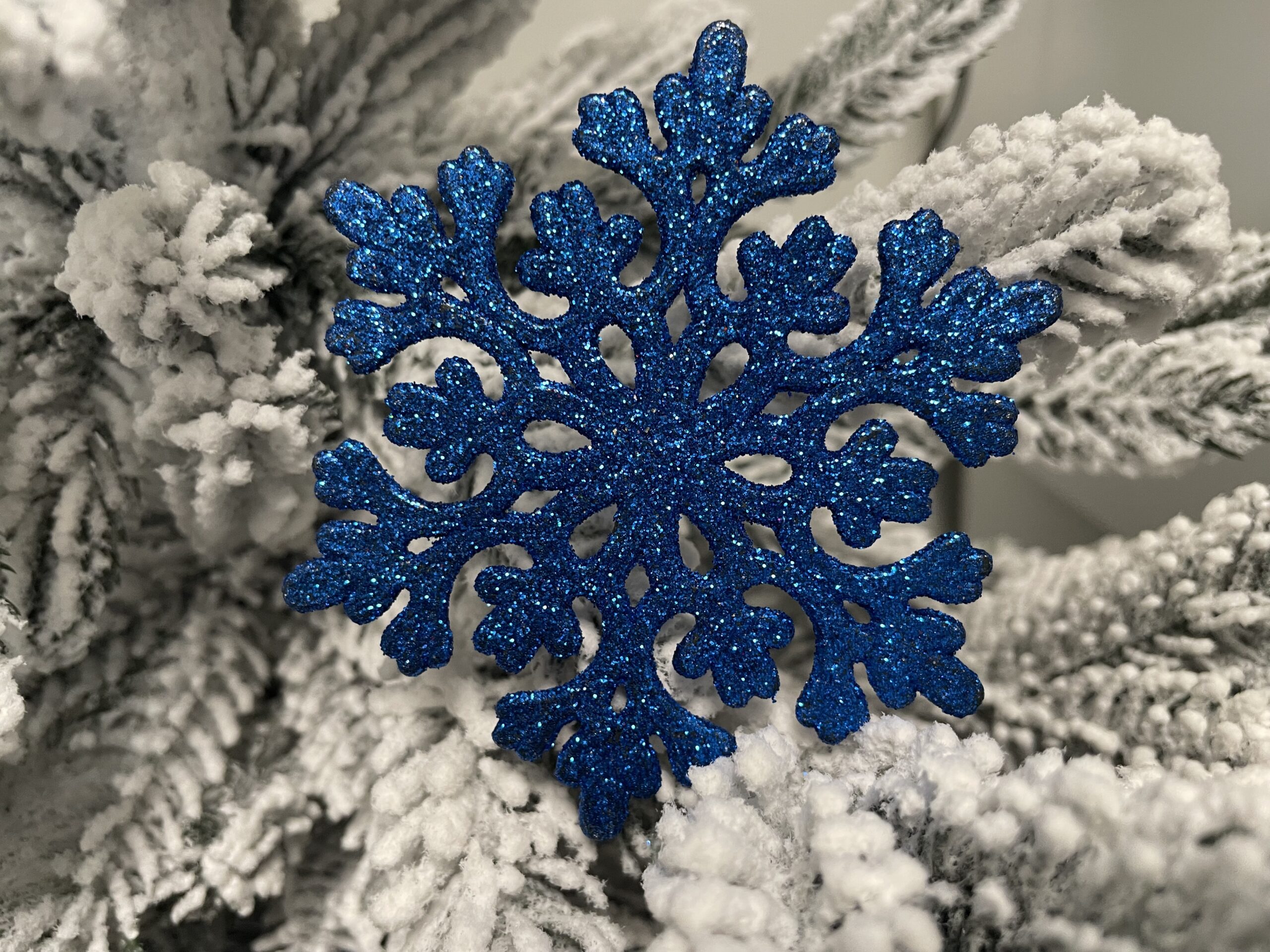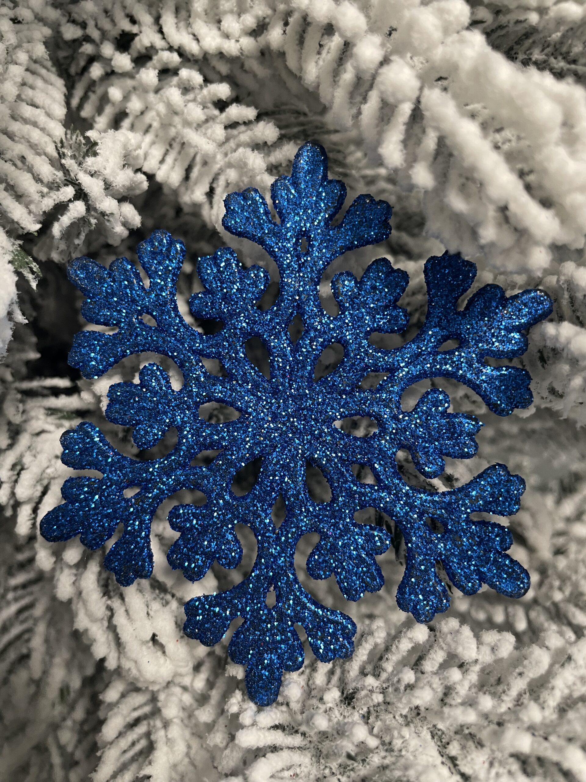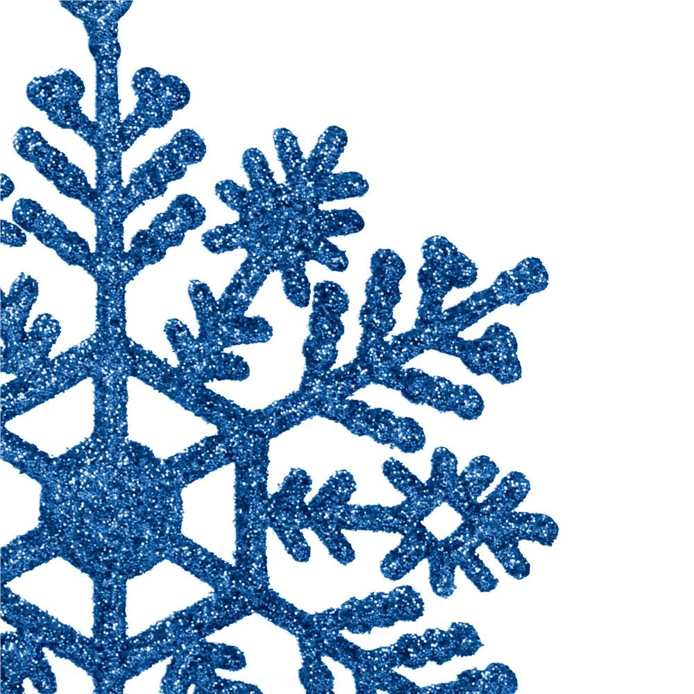 Set 12 decoratiuni pentru brad fulg de zapada, 10 cm, albastru cu sclipici