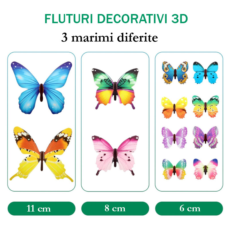 - Dimensiuni fluturi: 6 cm, 8 cm, 10 cm, 12 cm;