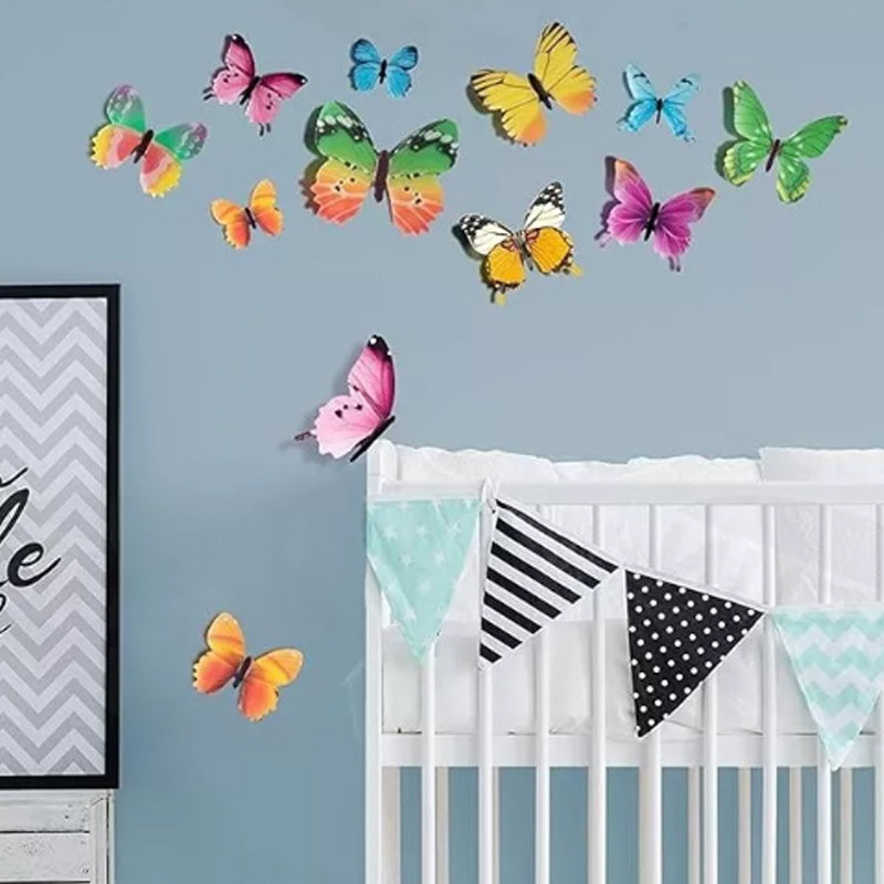 Acest set de fluturi decorativi 3D aduce o explozie de culoare si dinamism in orice incapere. Realizati in nuante vibrante si modele variate, fiecare fluture are un efect 3D realist, cu aripi usor curbate care creeaza impresia de miscare naturala. Materialul fosforescent ii face sa straluceasca discret in intuneric, oferind un efect vizual spectaculos, perfect pentru dormitoare, camere de joaca sau decoruri tematice.