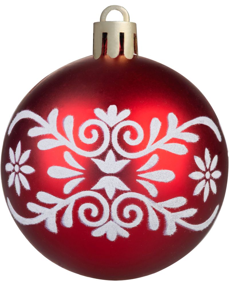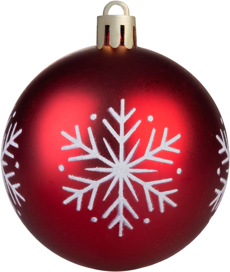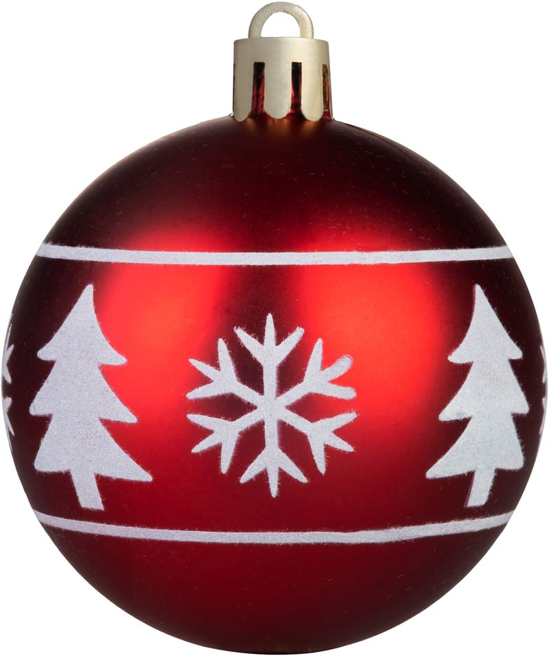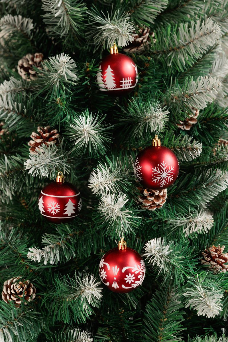 Set 12 globuri de Crăciun roșii cu ornament alb, 6 cm, pentru brad
