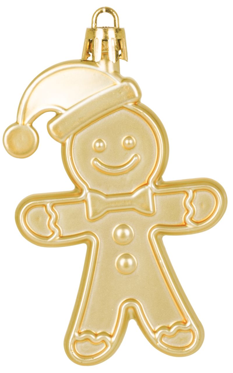 Set 12 ornamente brad de Crăciun omuleț turtă dulce auriu, 8 cm