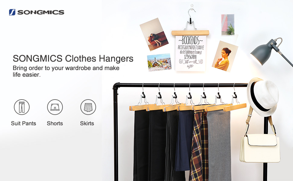 Organizeaza garderoba mai eficient cu acest set de 12 umerase din lemn pentru pantaloni Songmics, conceput pentru a pastra hainele bine fixate, fara cute si fara alunecare. Finisajul natural ofera un aspect elegant, iar sistemul de prindere cu insertie moale protejeaza materialele delicate. Datorita carligului rotativ 360°, umerasele sunt usor de folosit in orice tip de dulap.