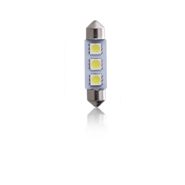 Set 2 becuri auto Vecta cu 3 leduri SMD 12V T11x/39mm P29T alb sofit Festoon